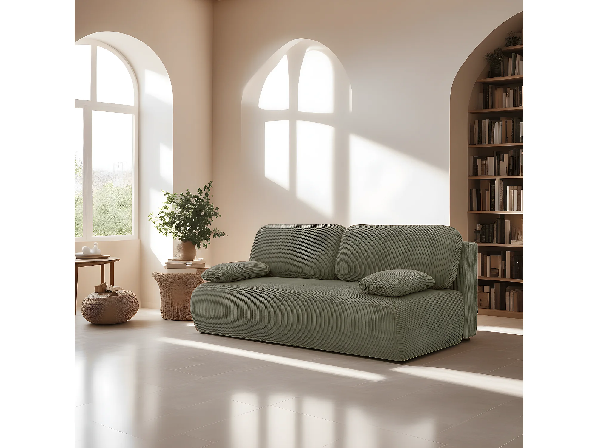 Canapé convertible 3 places avec coffre de rangement en velours côtelé vert kaki - Gemma
