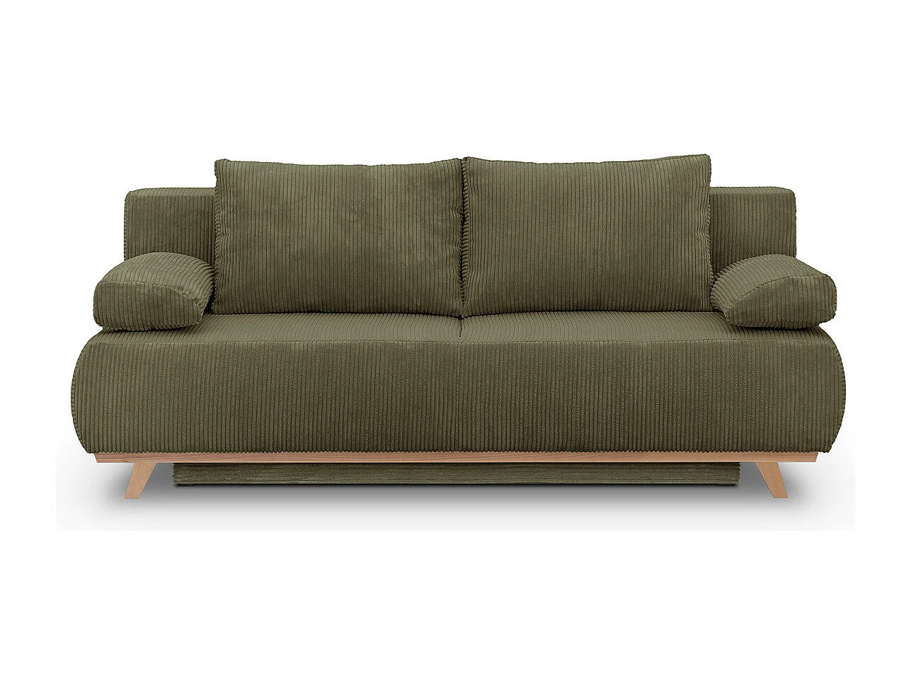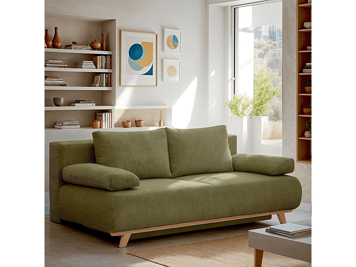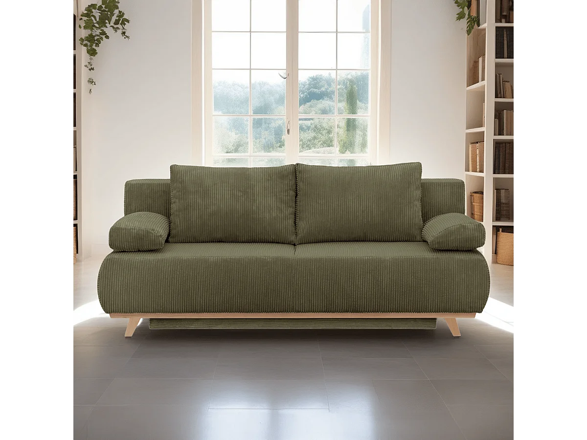 Canapé convertible 3 places avec coffre de rangement en velours côtelé vert kaki - Laria