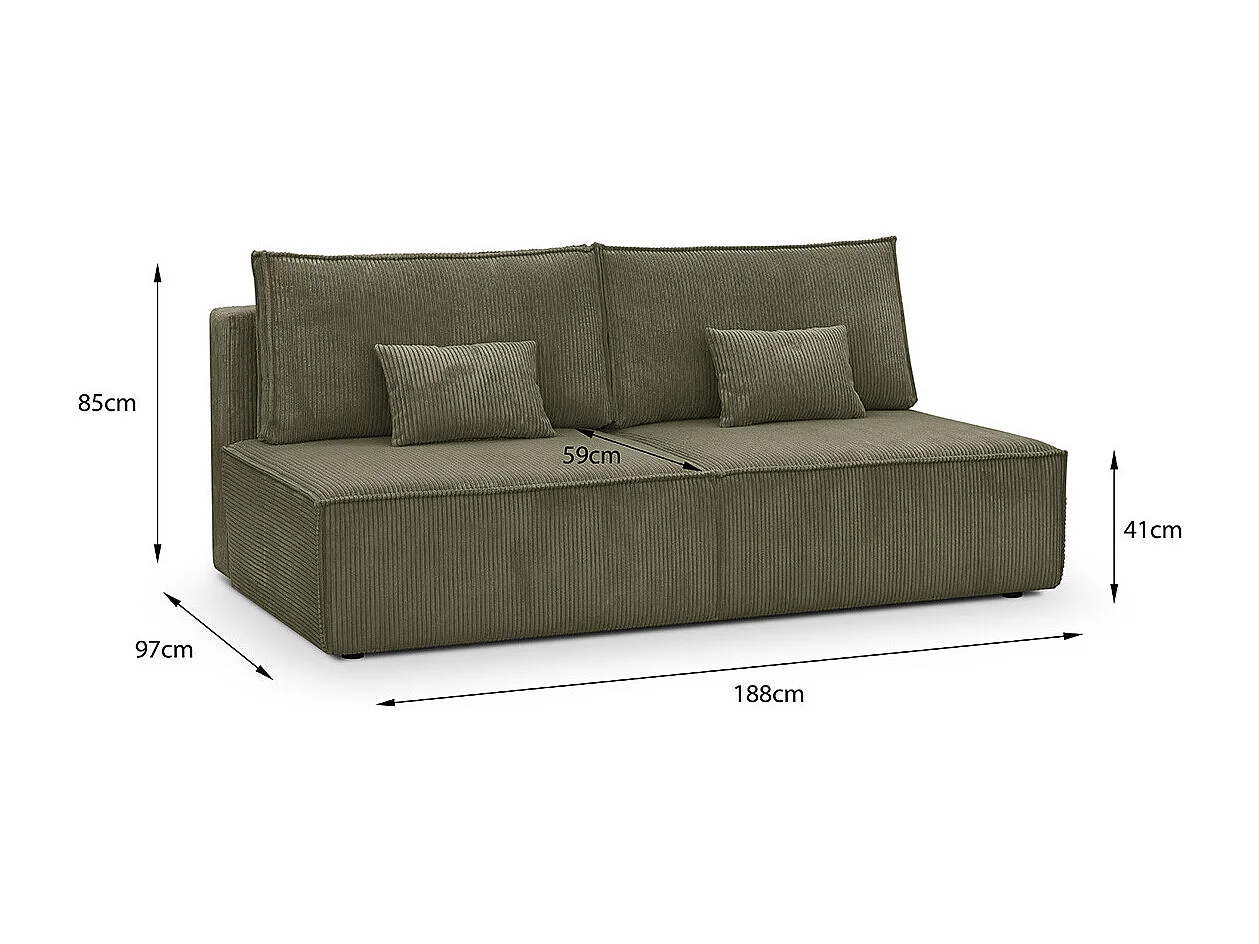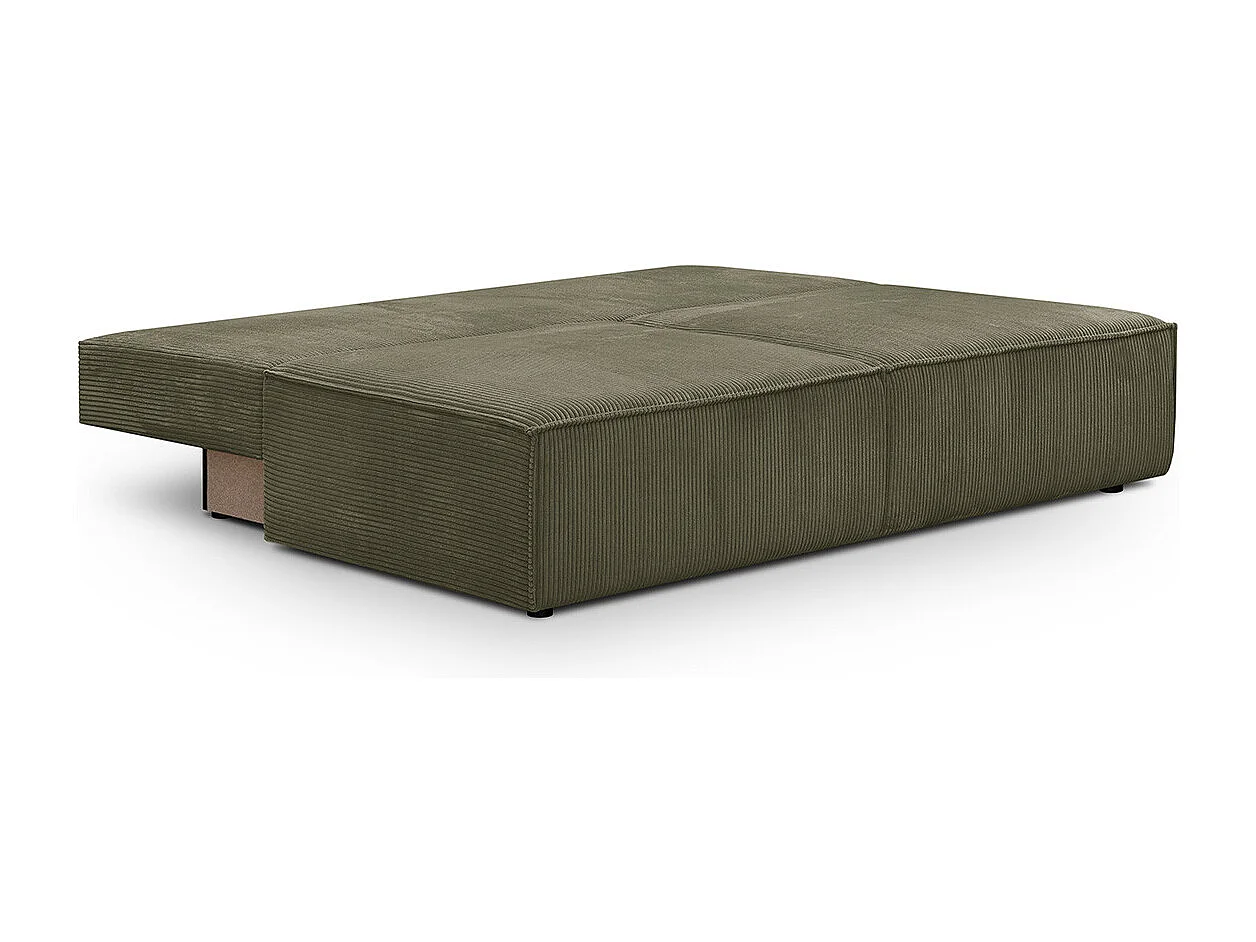 Canapé convertible 3 places avec coffre de rangement en velours côtelé vert kaki - Milla