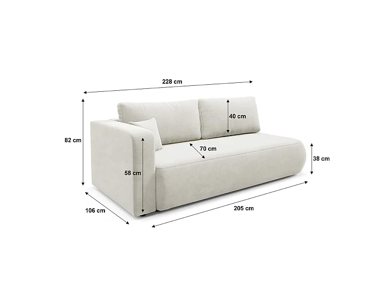 Canapé convertible 3 places avec coffre et accoudoir réversible Antonio Blanc cassé