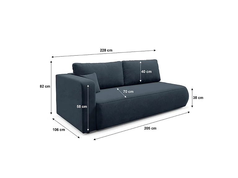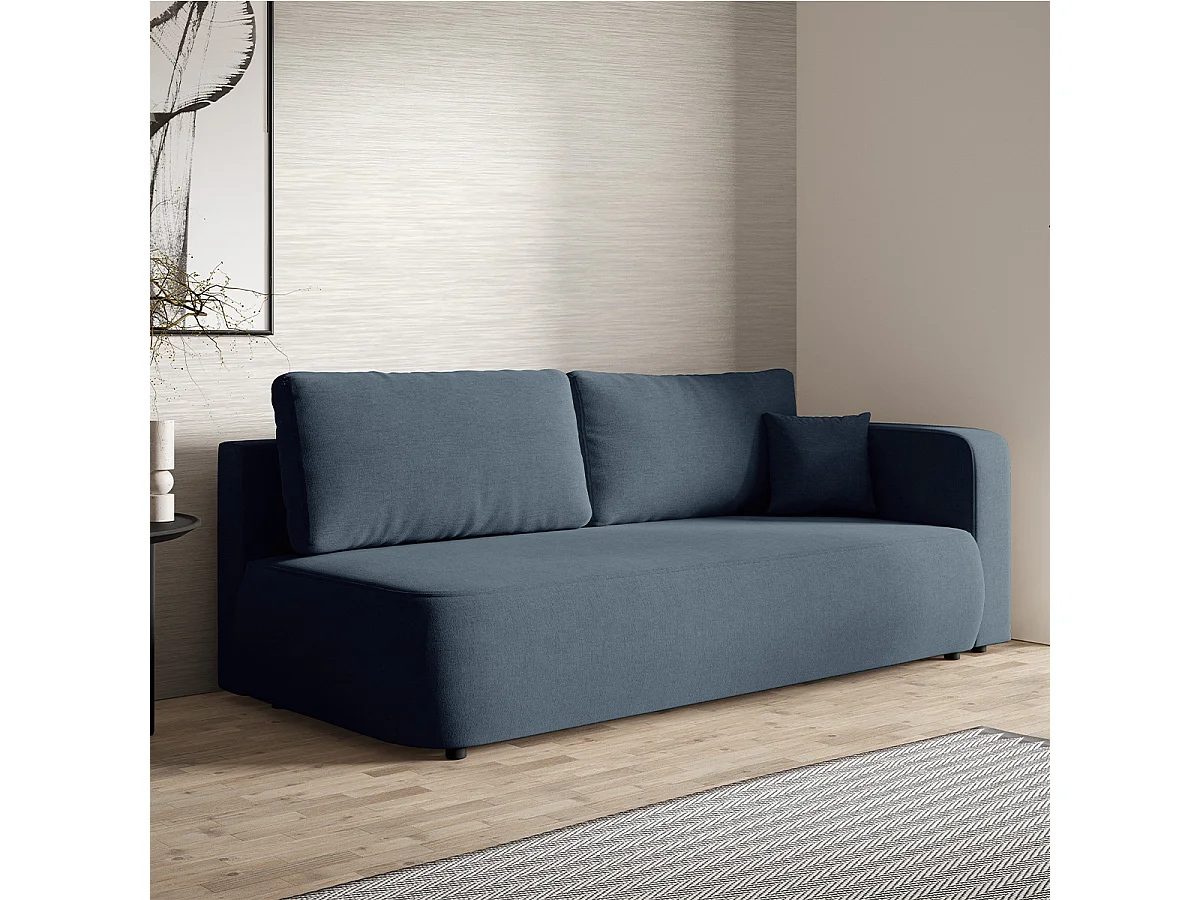 Canapé convertible 3 places avec coffre et accoudoir réversible Antonio Bleu