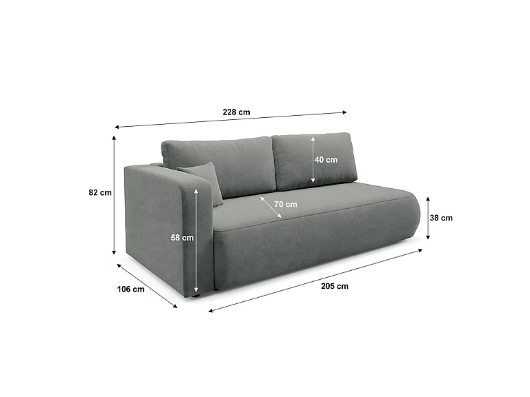Canapé convertible 3 places avec coffre et accoudoir réversible Antonio Gris