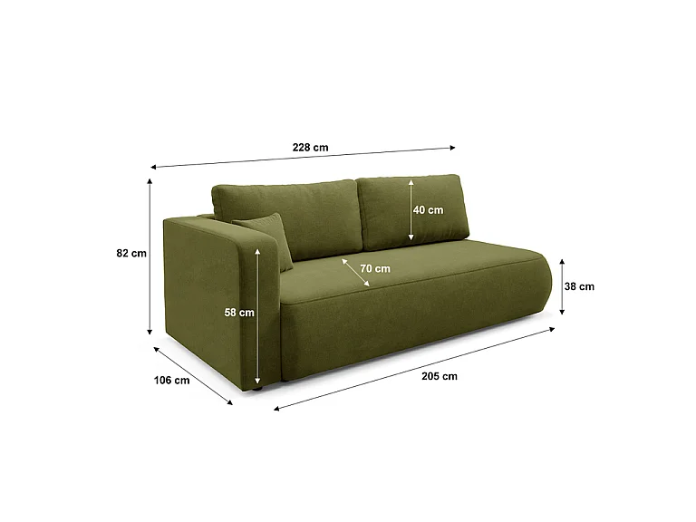Canapé convertible 3 places avec coffre et accoudoir réversible Antonio Vert