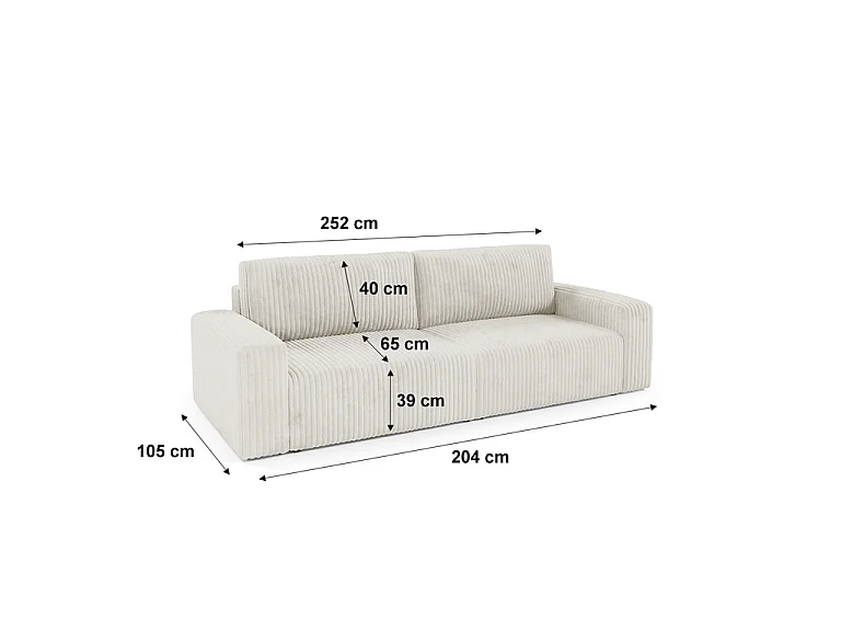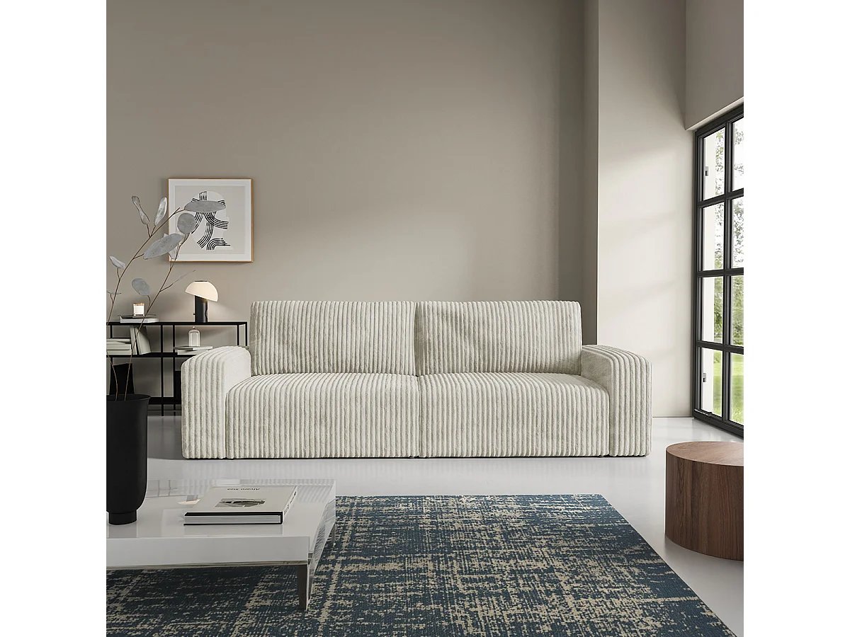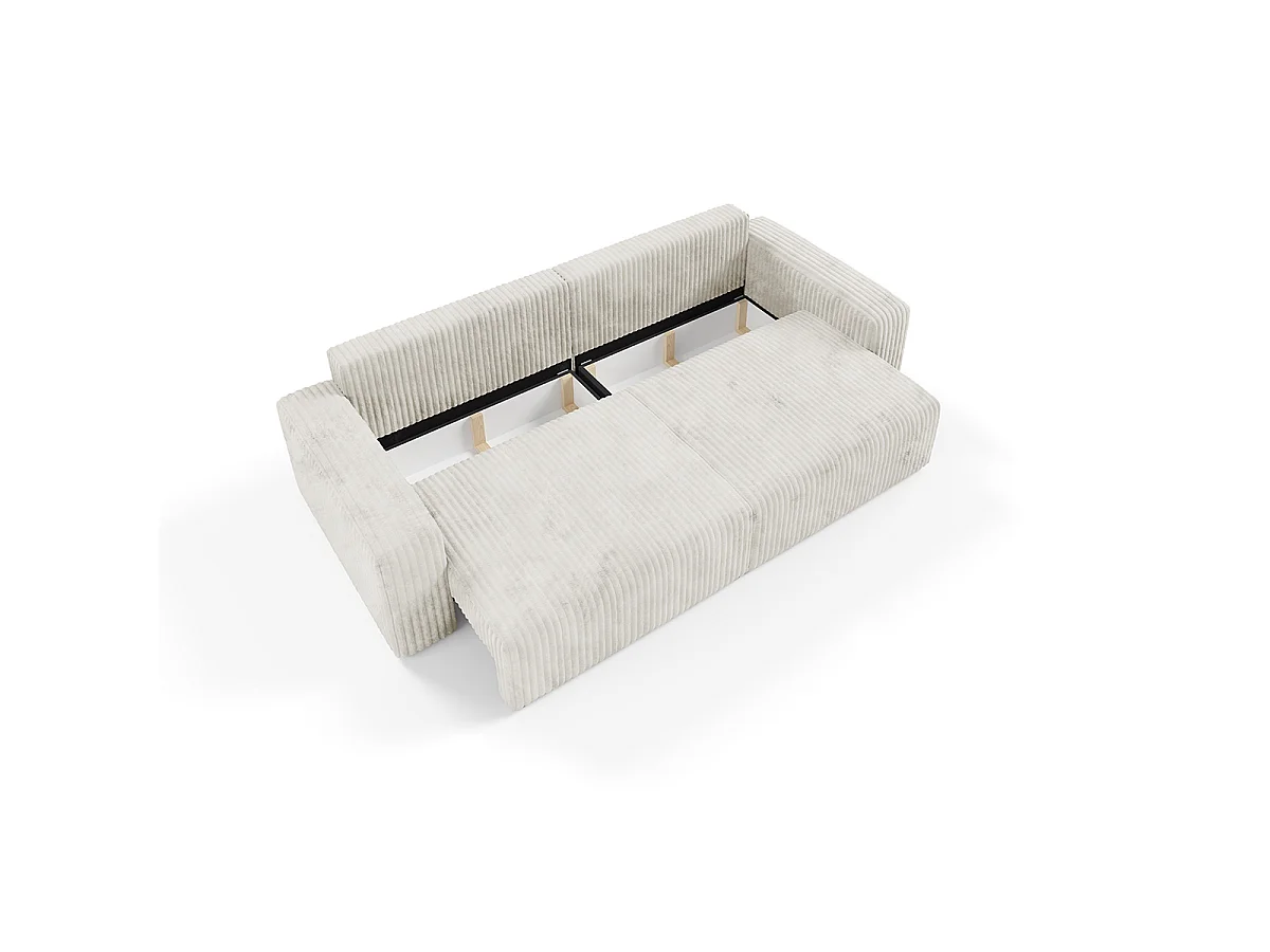 Canapé convertible 3 places avec coffre et accoudoirs Angela Blanc cassé