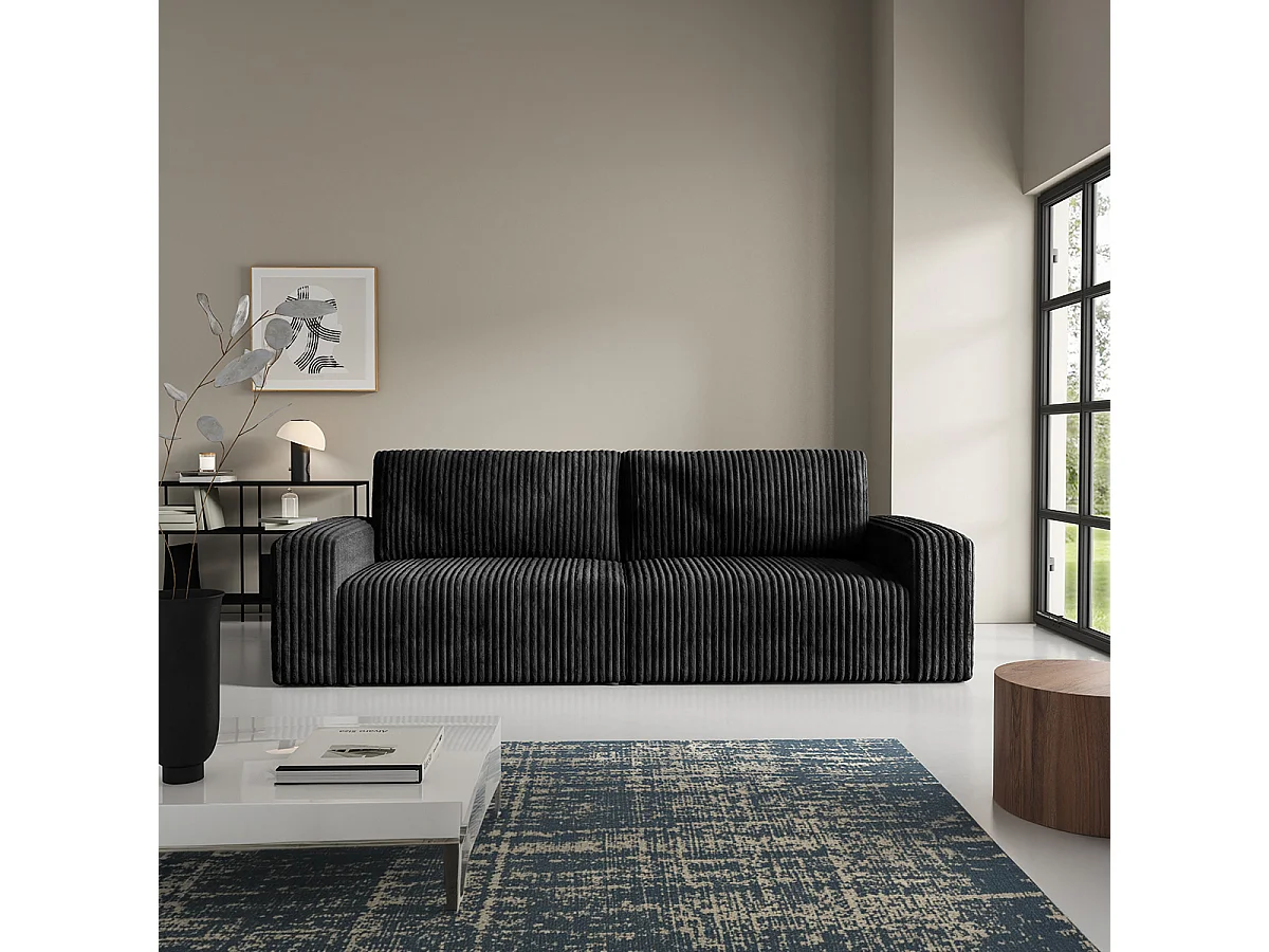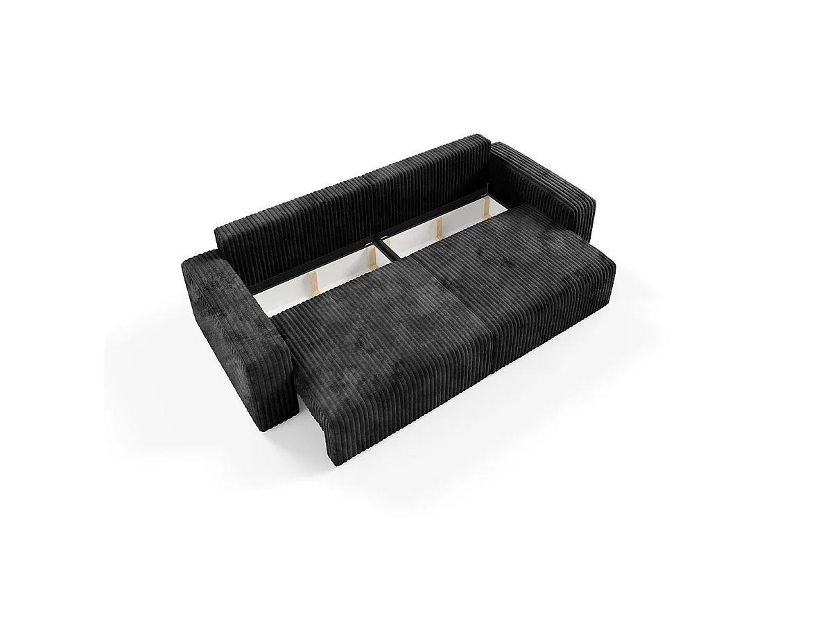 Canapé convertible 3 places avec coffre et accoudoirs Angela Noir
