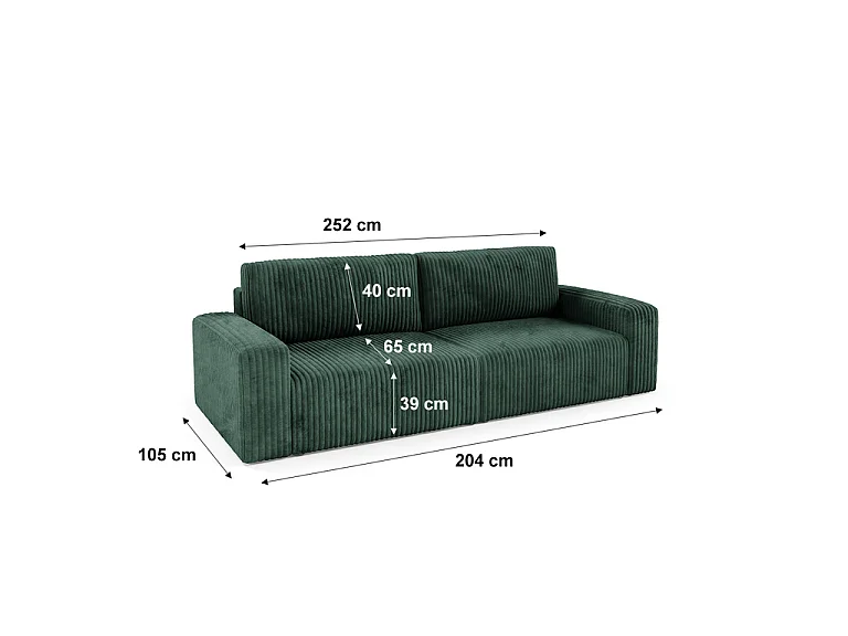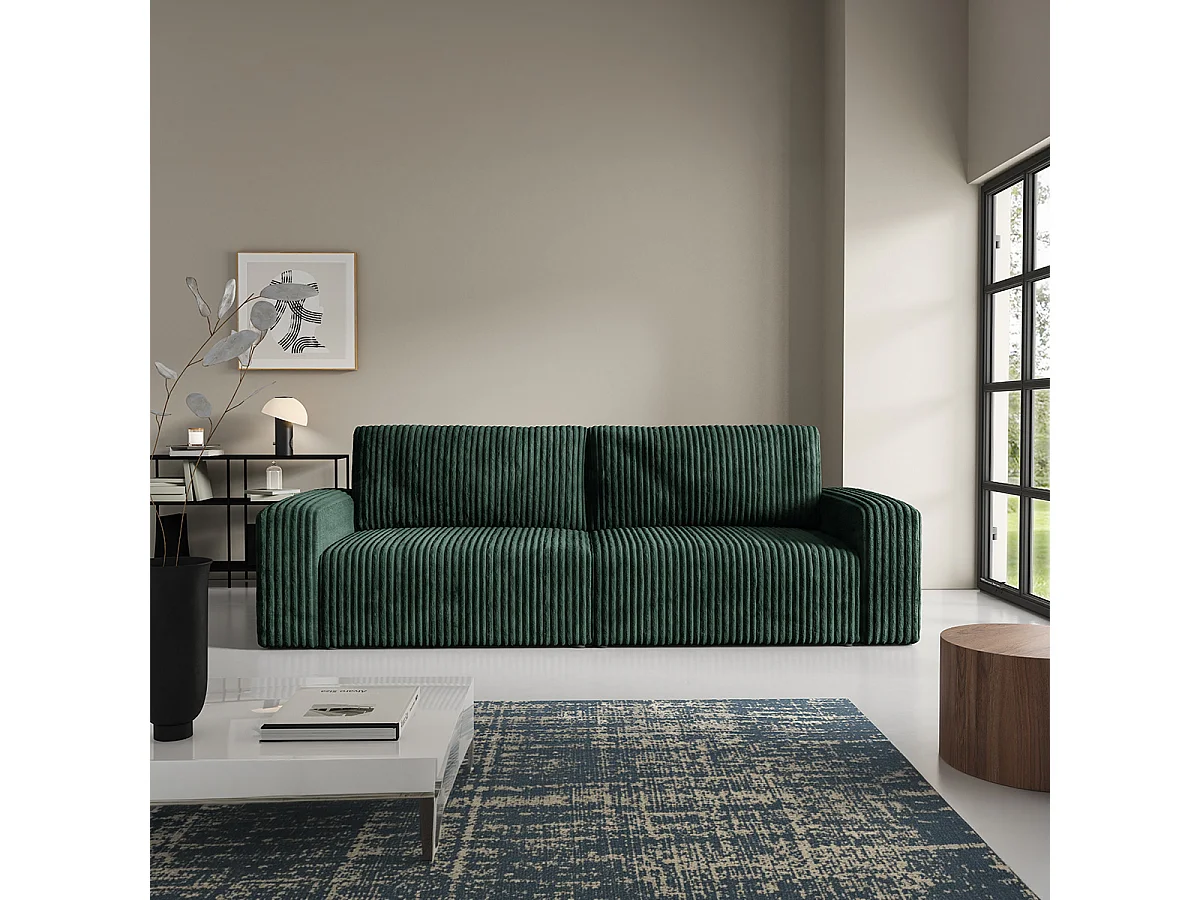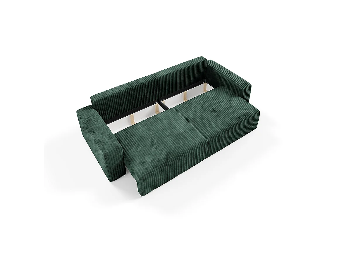 Canapé convertible 3 places avec coffre et accoudoirs Angela Vert sapin
