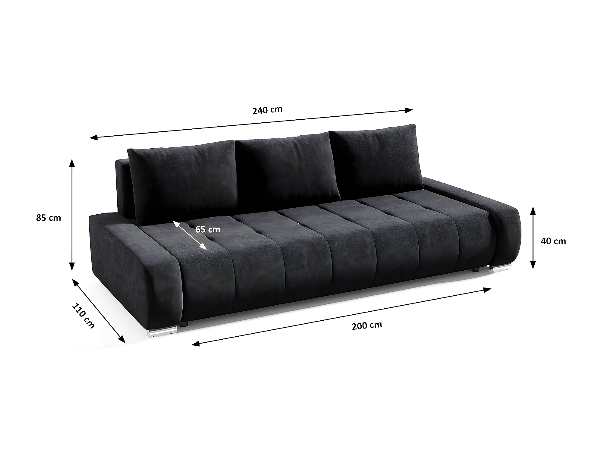 Canapé convertible 3 places avec coffre Jonas Gris anthracite