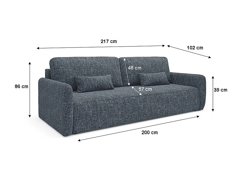 Canapé convertible 3 places avec coffre Lazare Bleu