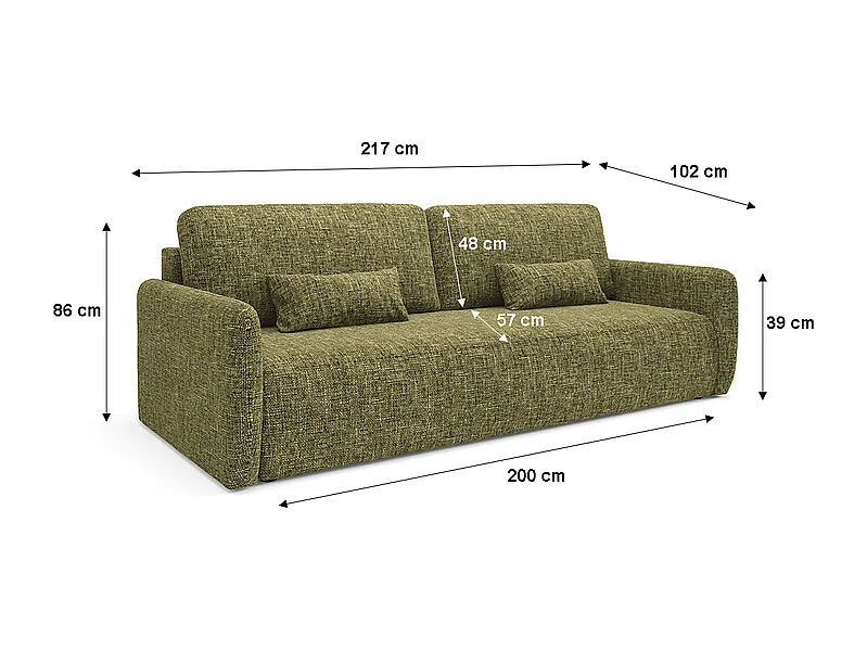 Canapé convertible 3 places avec coffre Lazare Vert