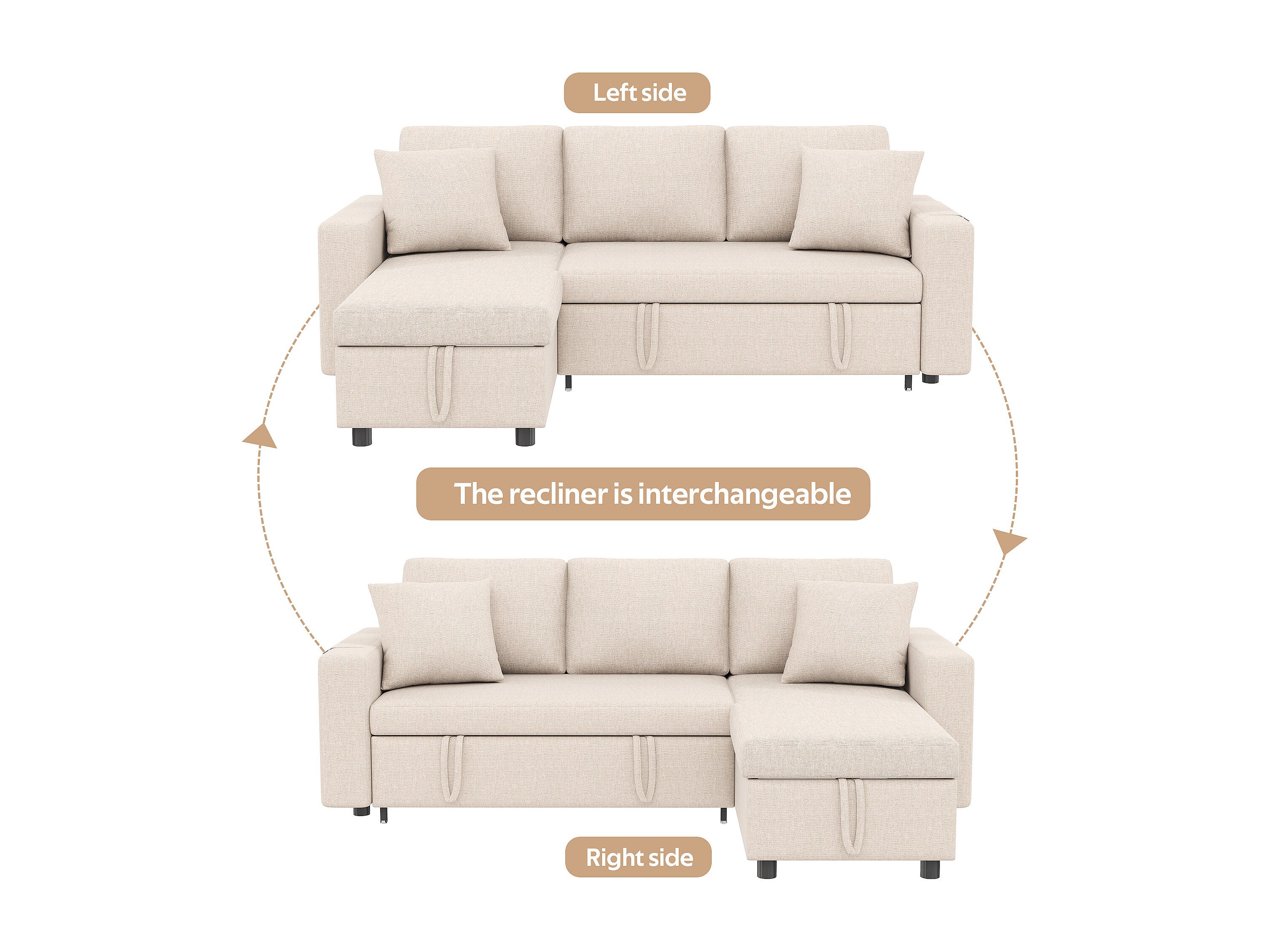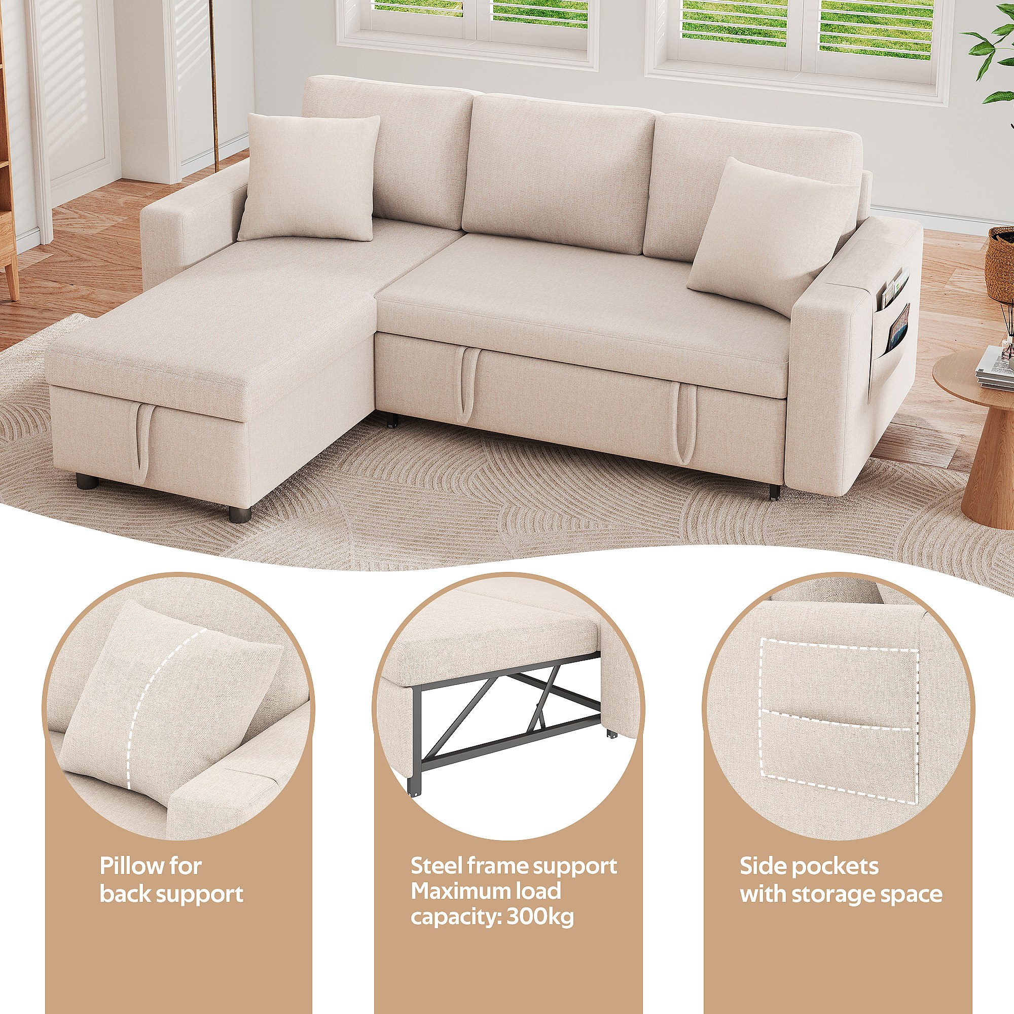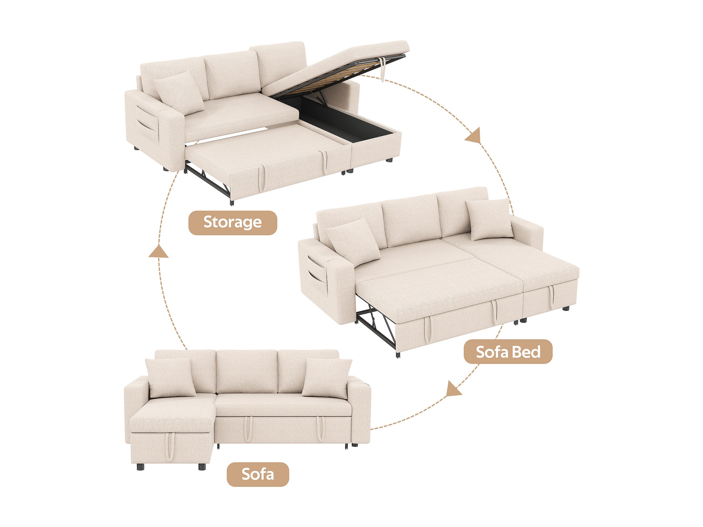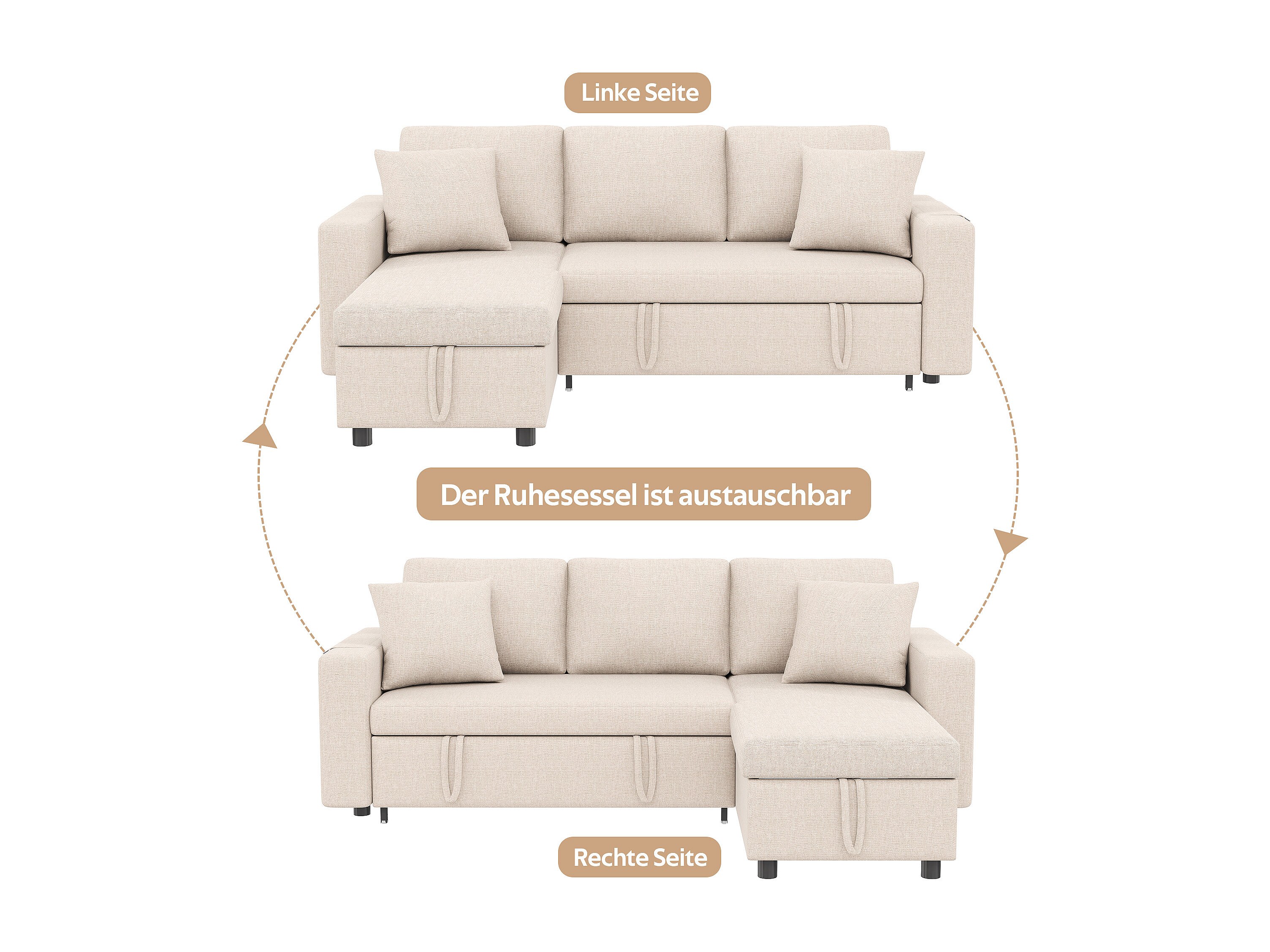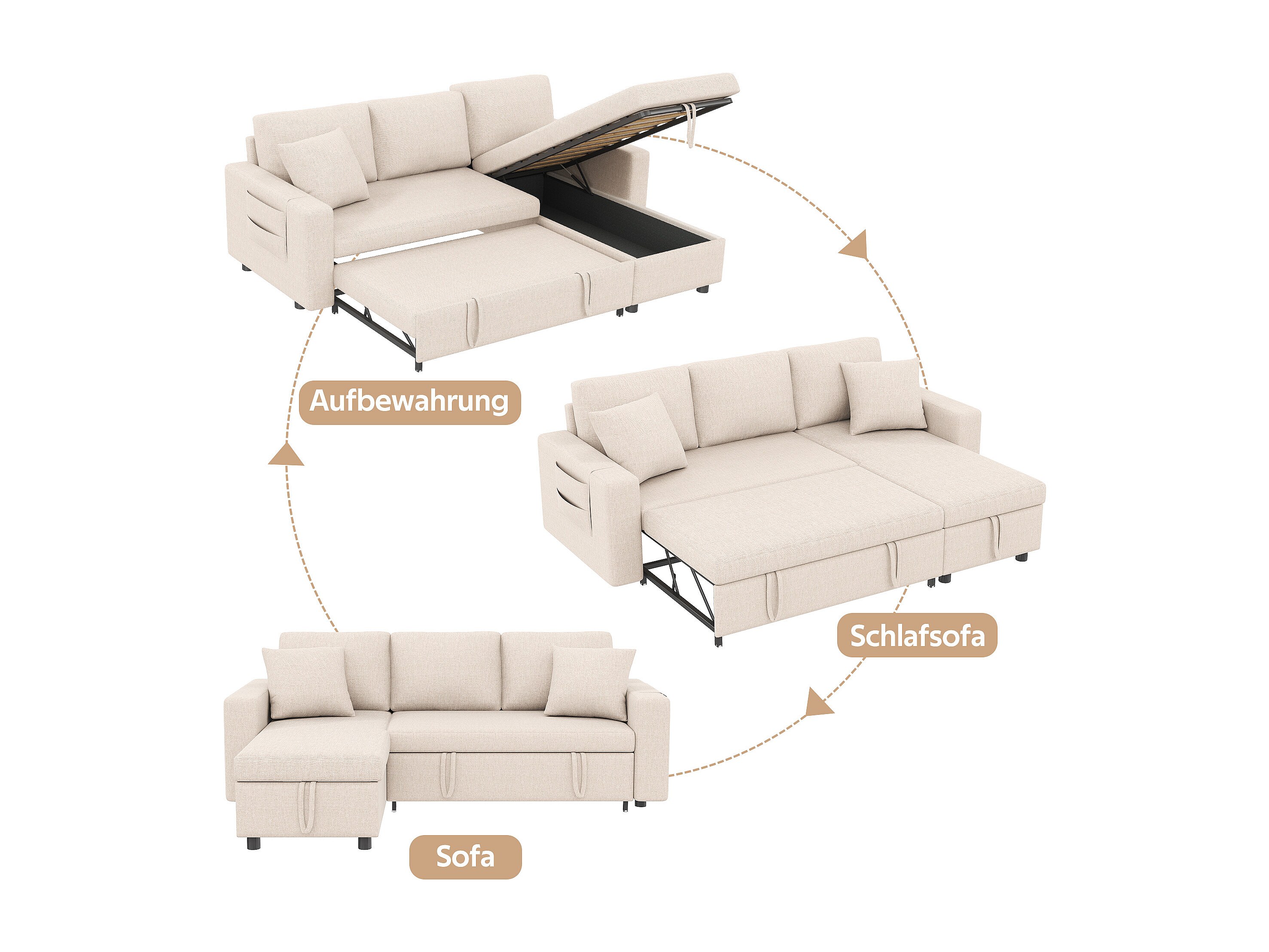 Canapé convertible 3 places avec rangement - 219.5 x 142.5 x 83 cm - canapé-lit de salon - lin - beige