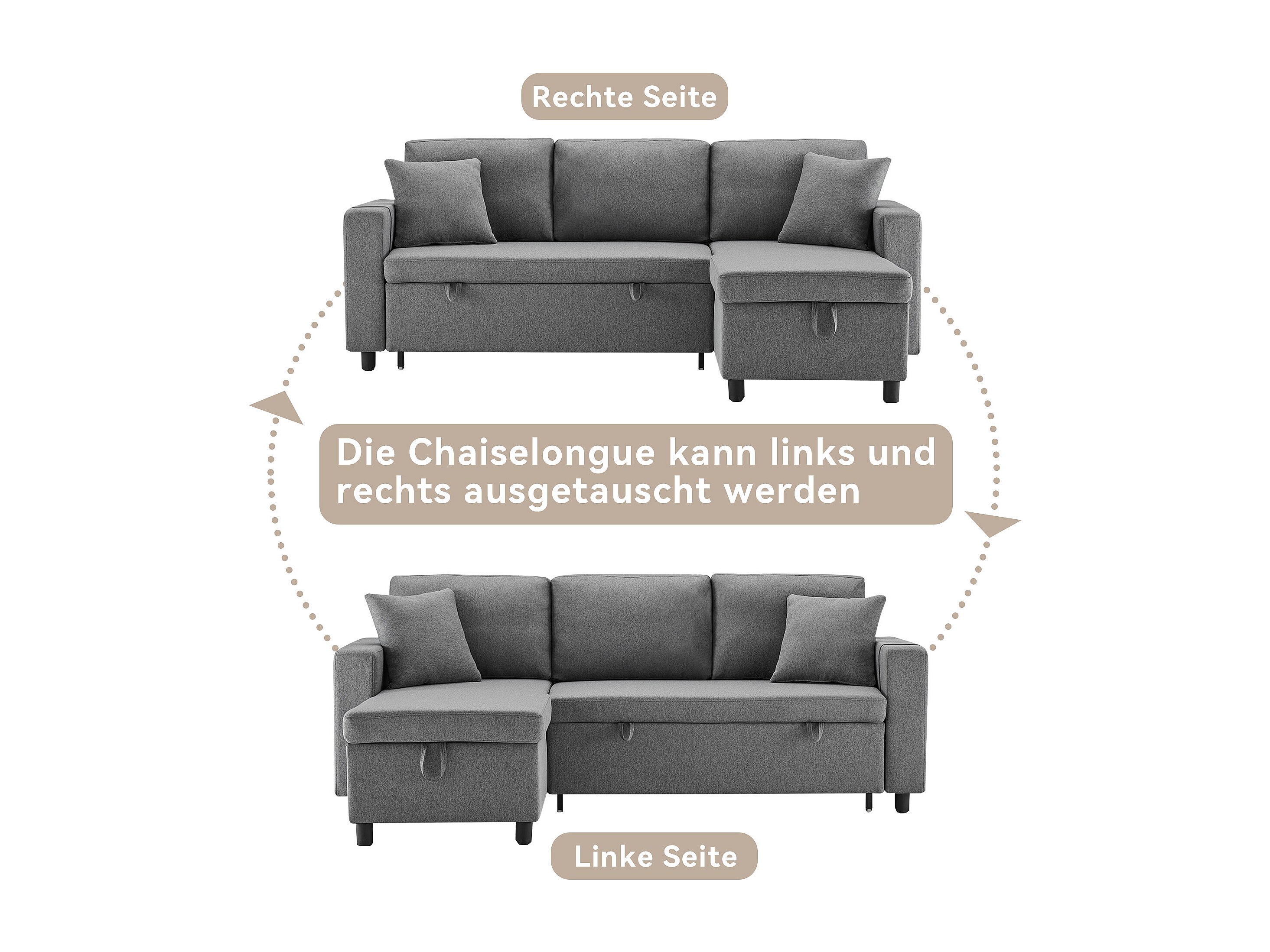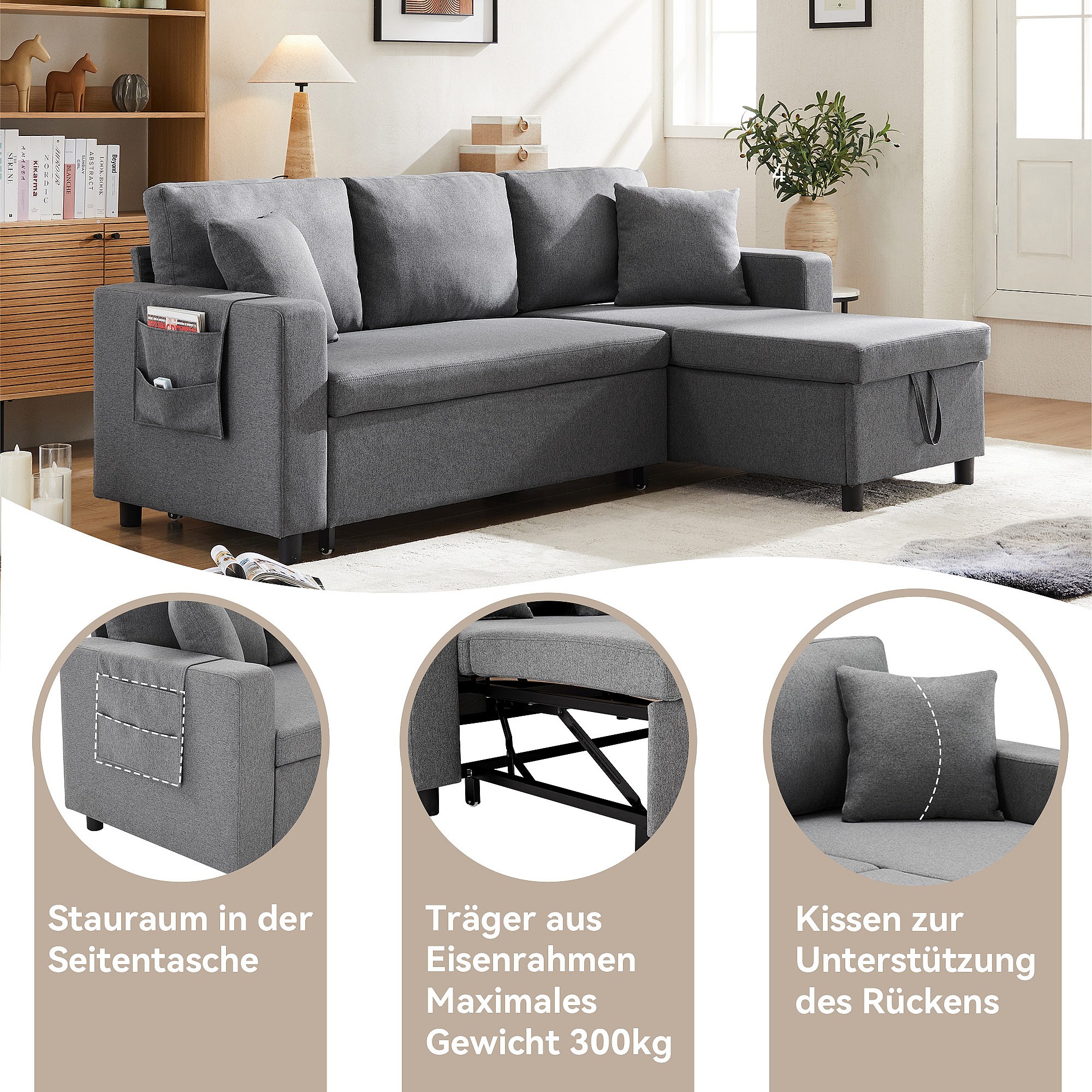 Canapé convertible 3 places avec rangement - 219.5 x 142.5 x 83 cm - canapé-lit de salon - lin - gris
