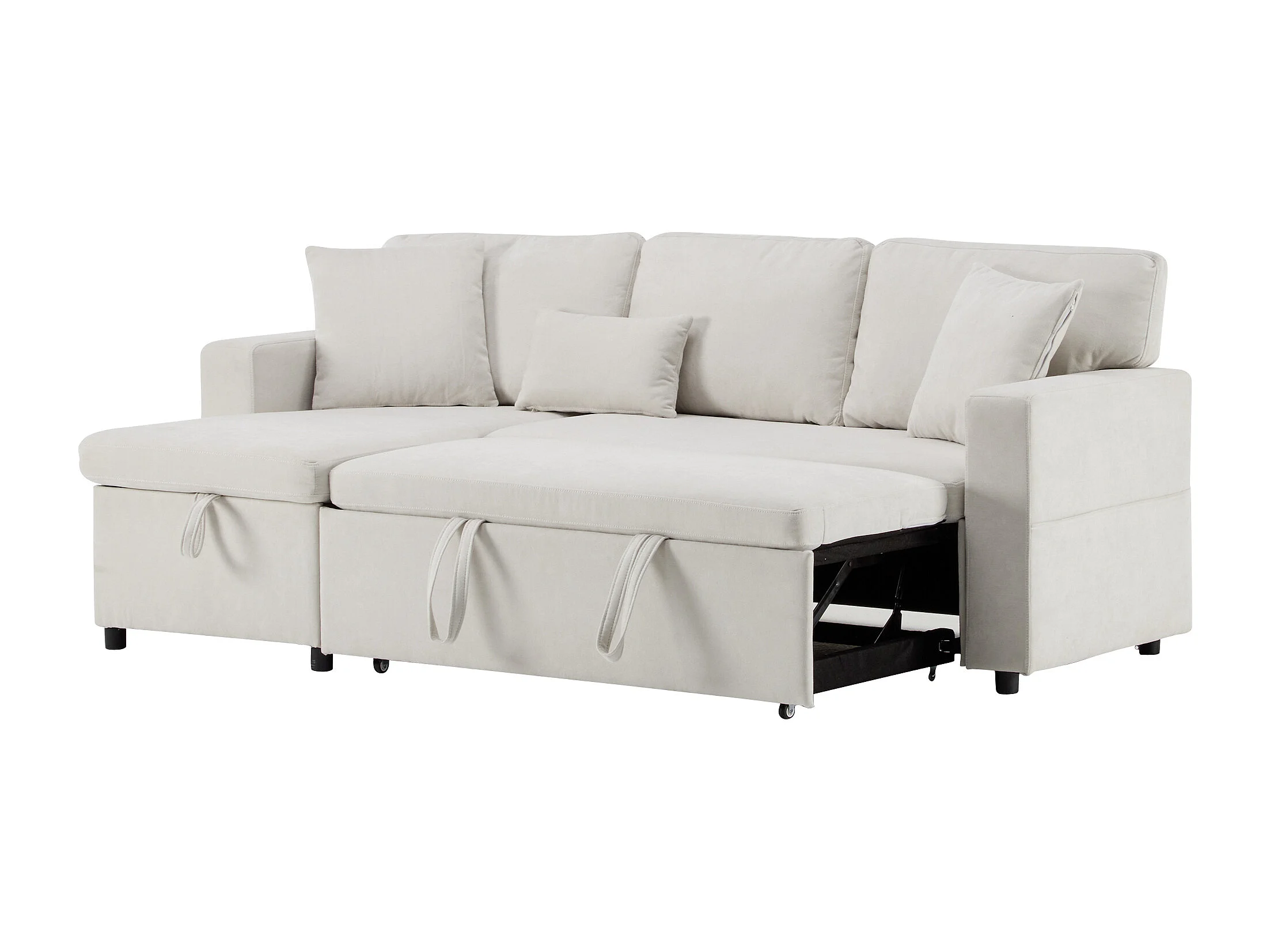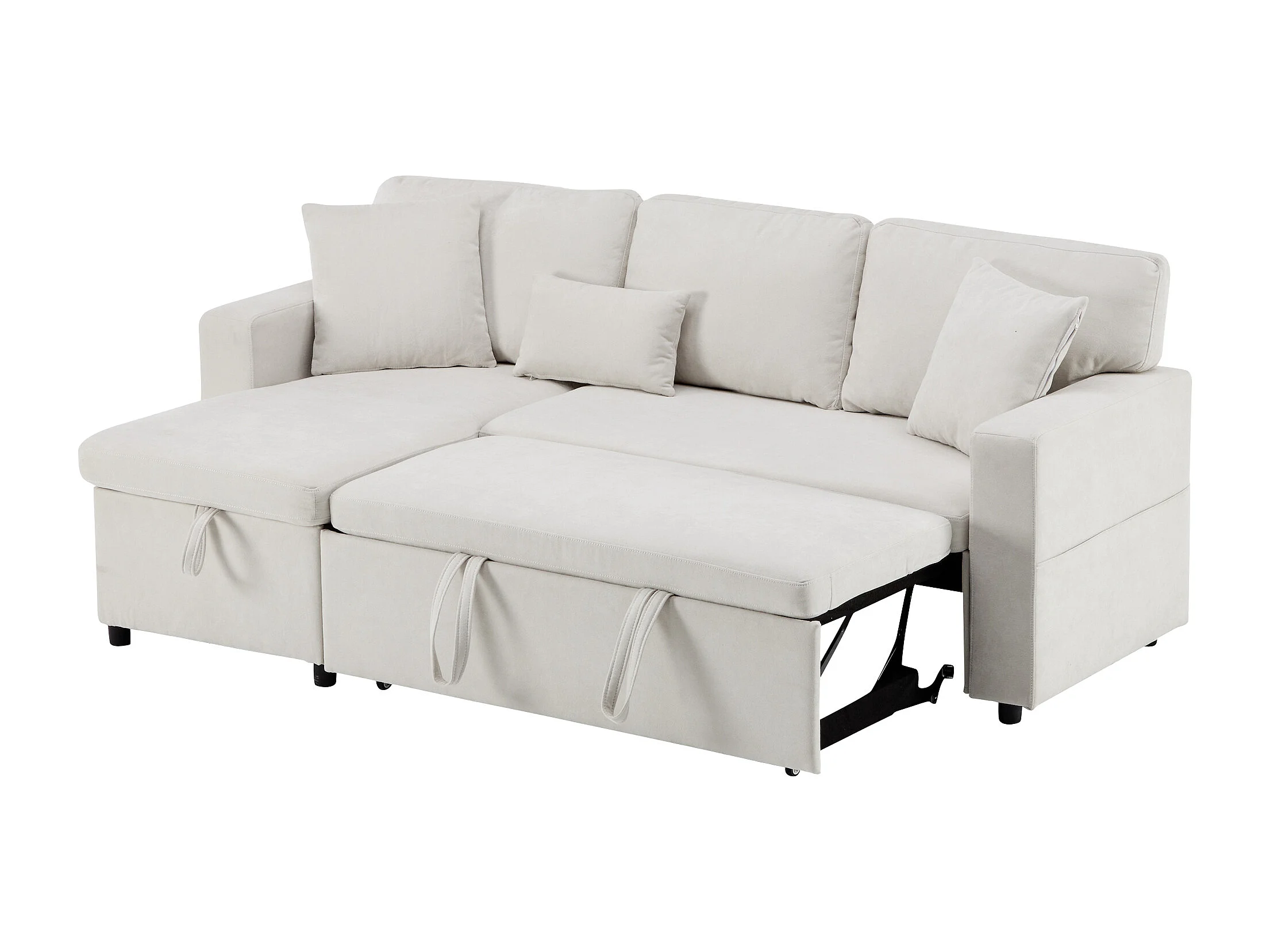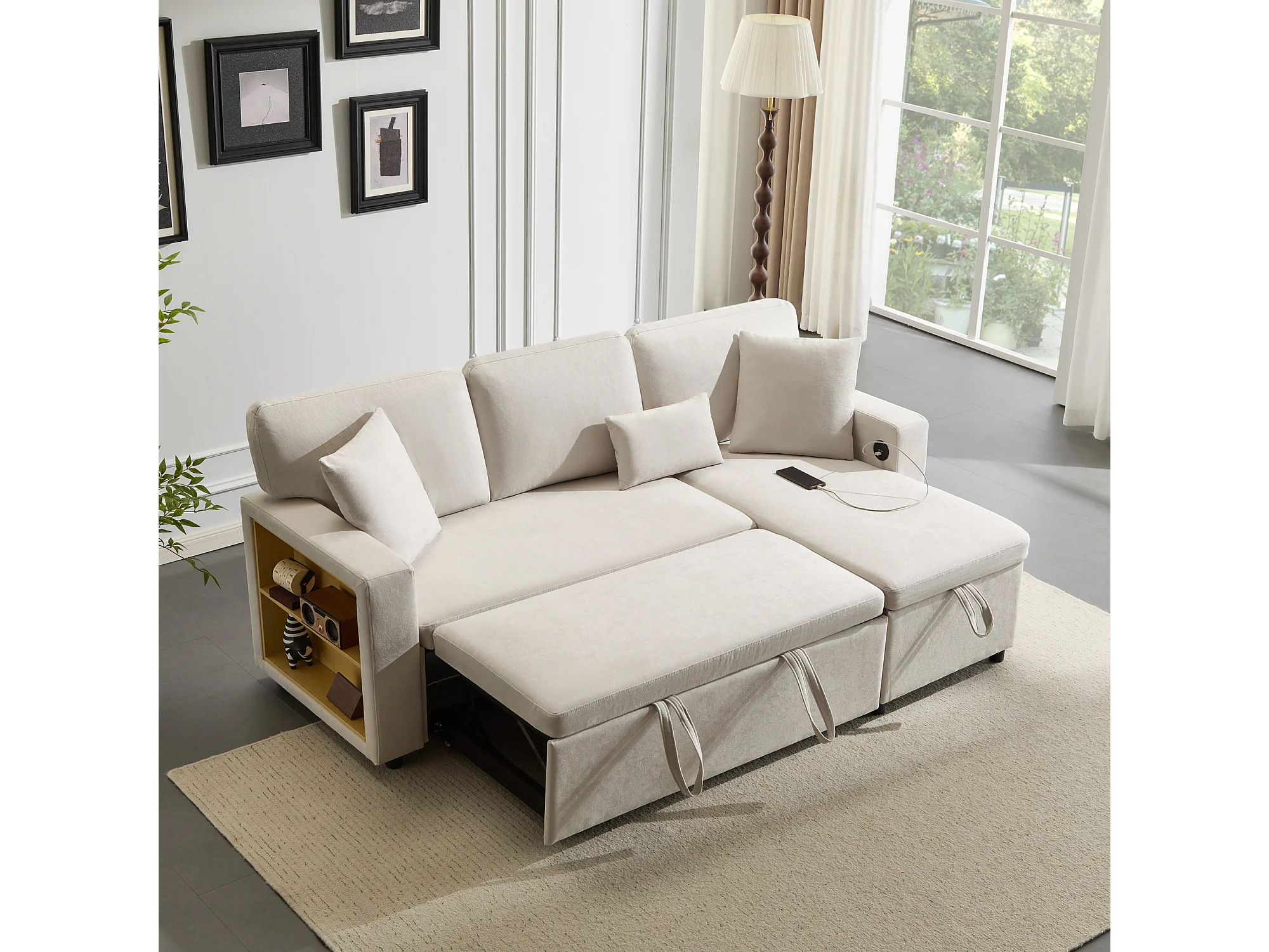 Canapé convertible 3 places avec rangement et port USB - Tissu flanelle beige