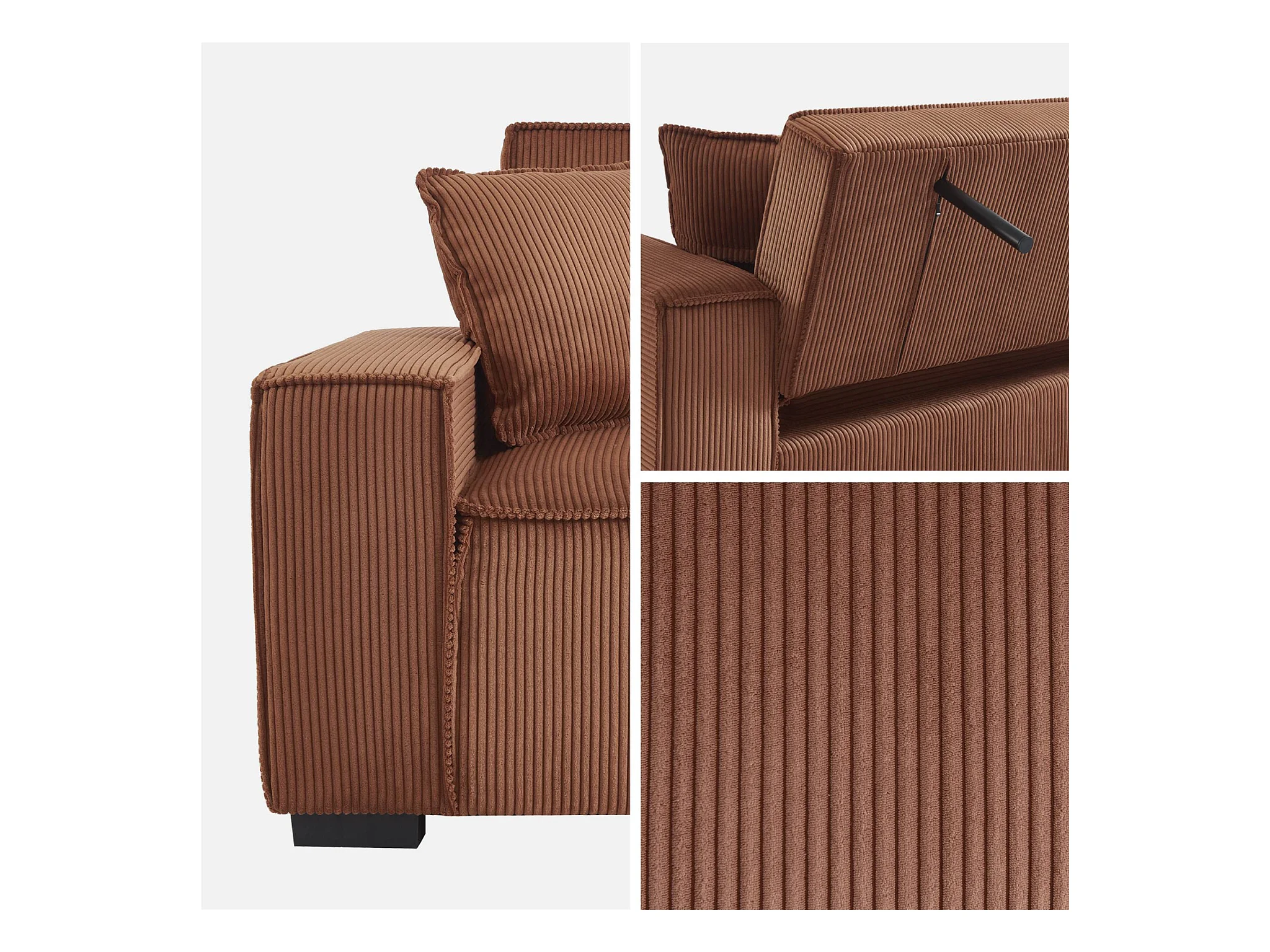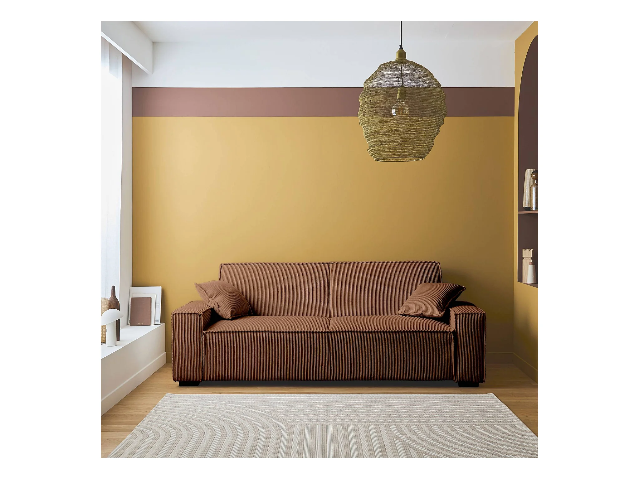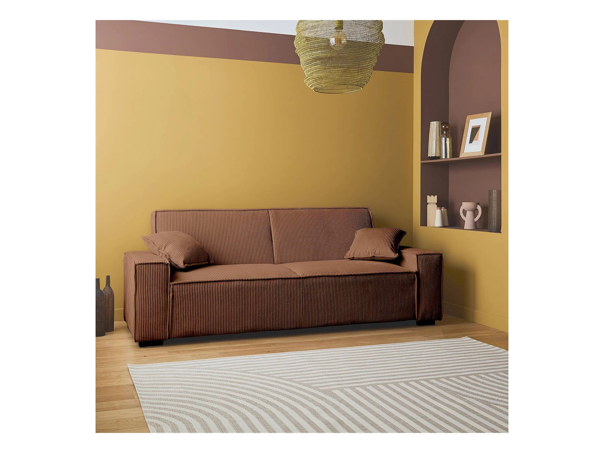Canapé convertible 3 places camel velours côtelé L 231 x P 96.5 x H 80cm