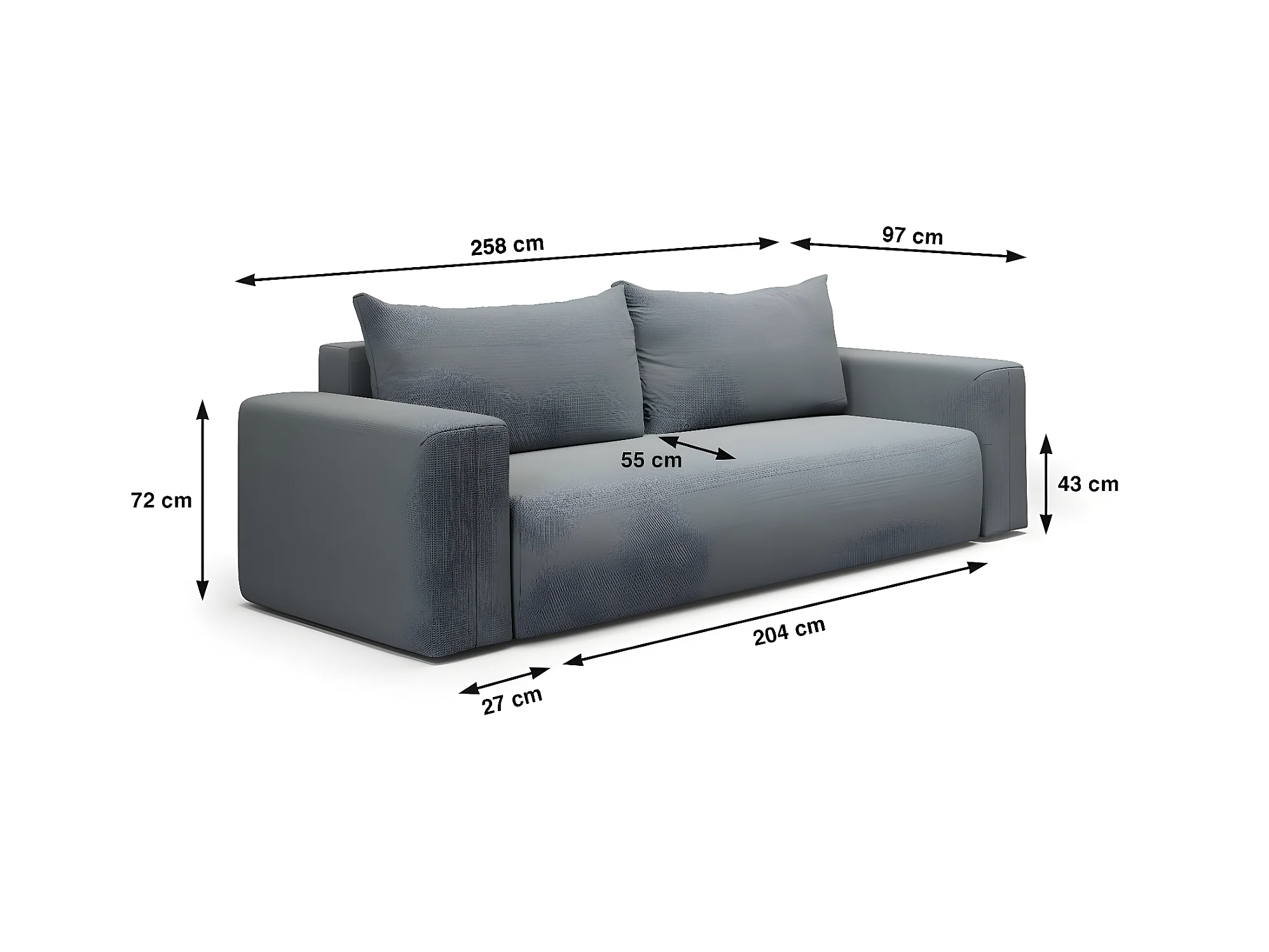 Canapé convertible 3 places coffre Bliss Gris