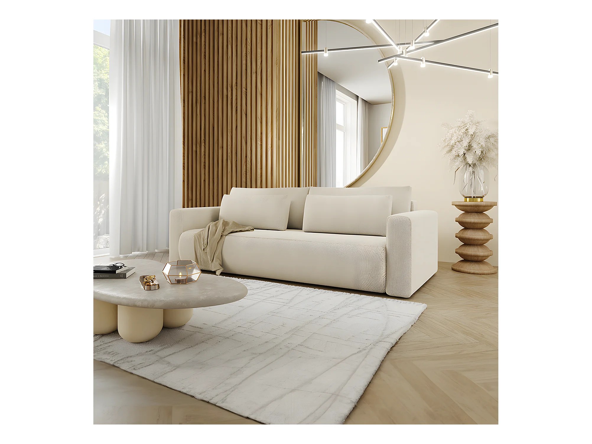 Canapé convertible 3 places coffre Evy Beige