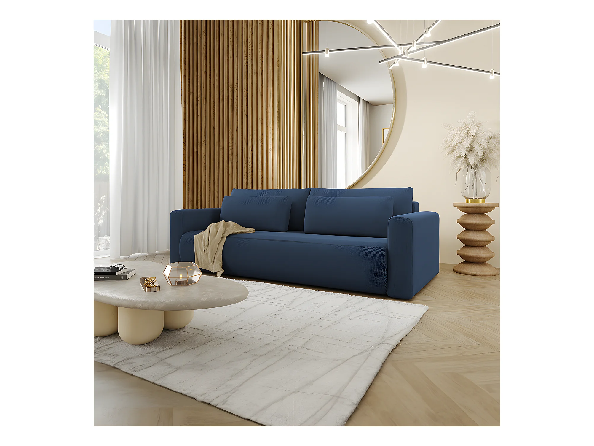Canapé convertible 3 places coffre Evy Bleu