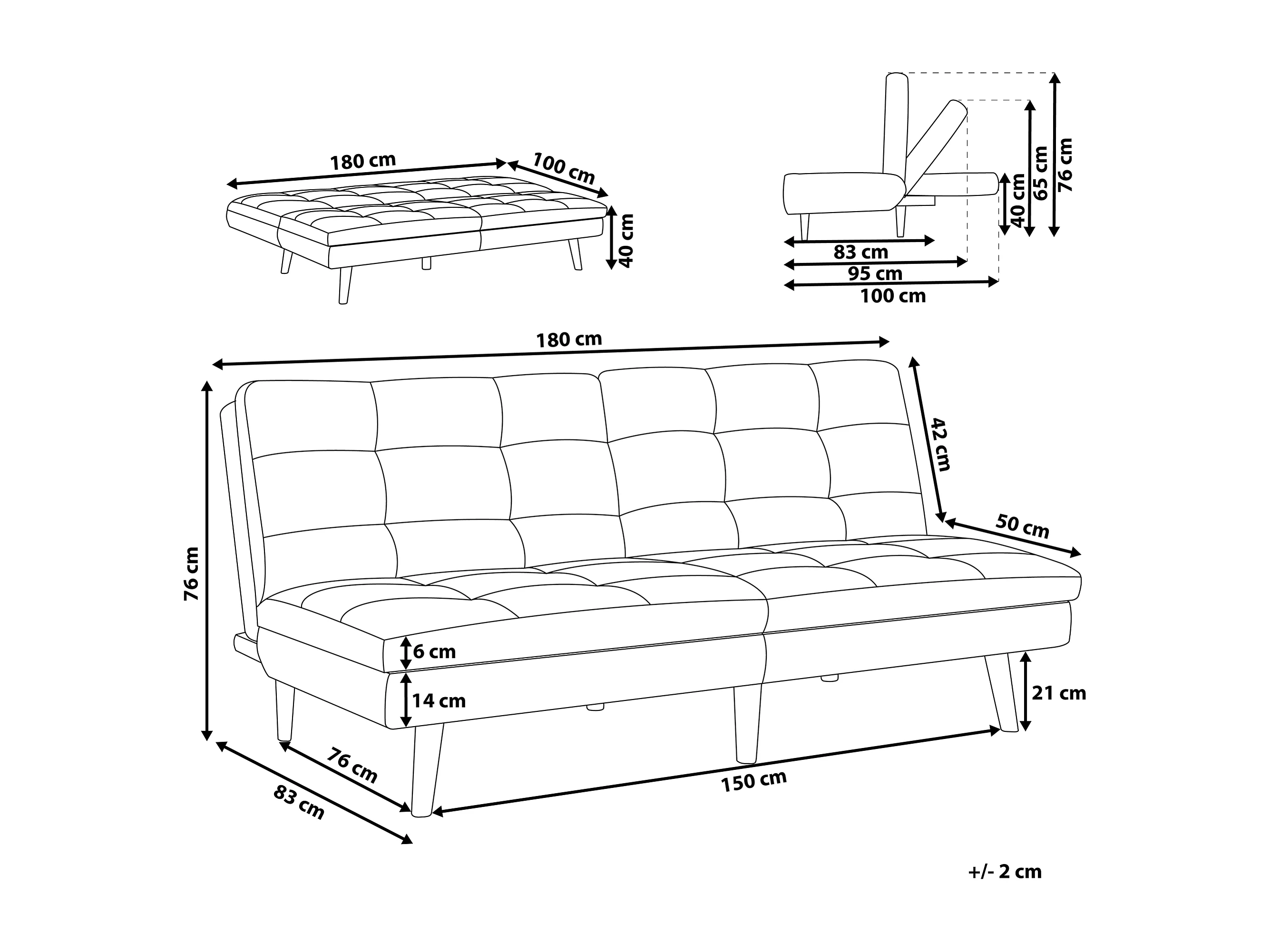 Canapé-lit 3 places RONNE Tissu Turquoise