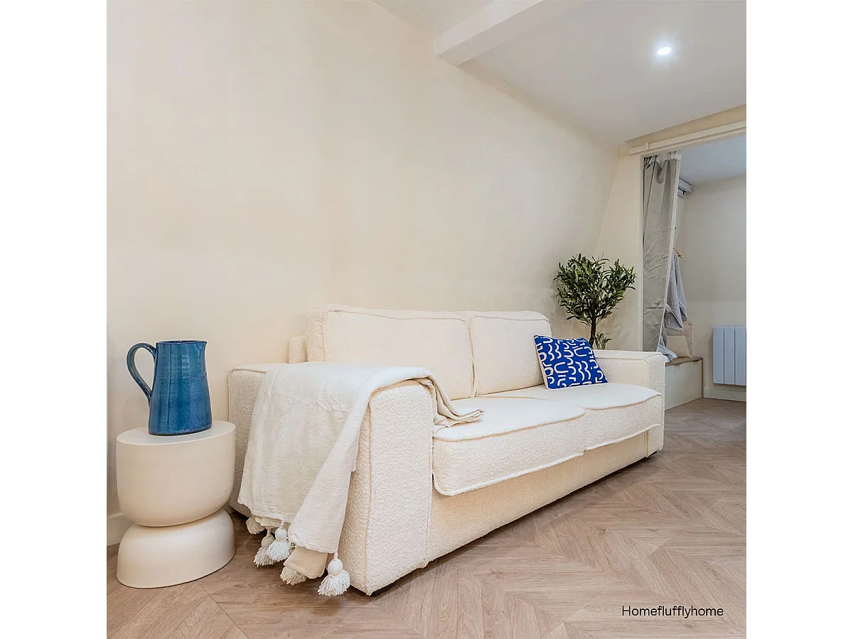 Canapé convertible 3 places en tissu bouclé écru - Ouverture express - Couchage quotidien - Matelas HD 140 x 190 - Dario