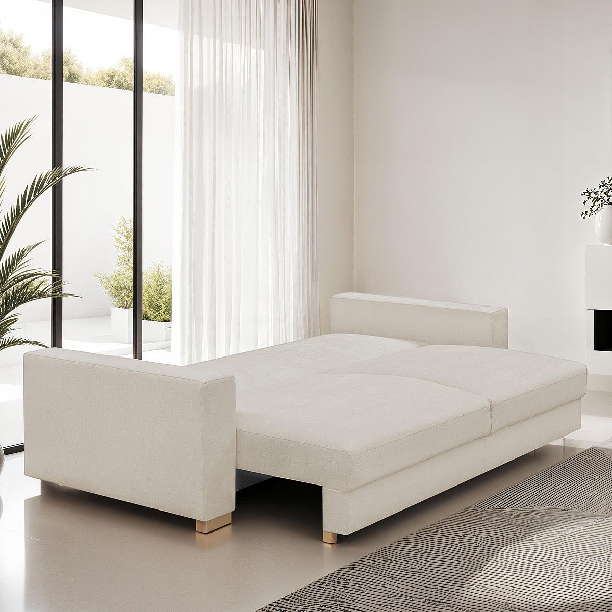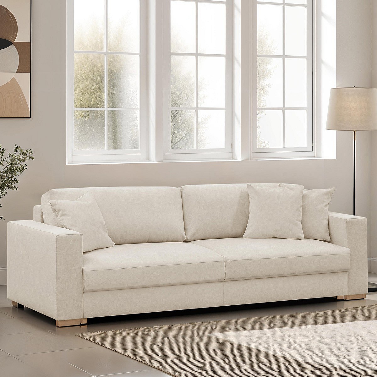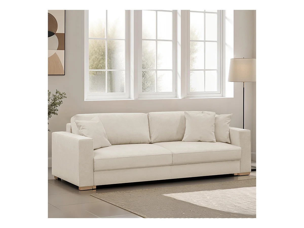 Canapé convertible 3 places en tissu chenille beige - Robin