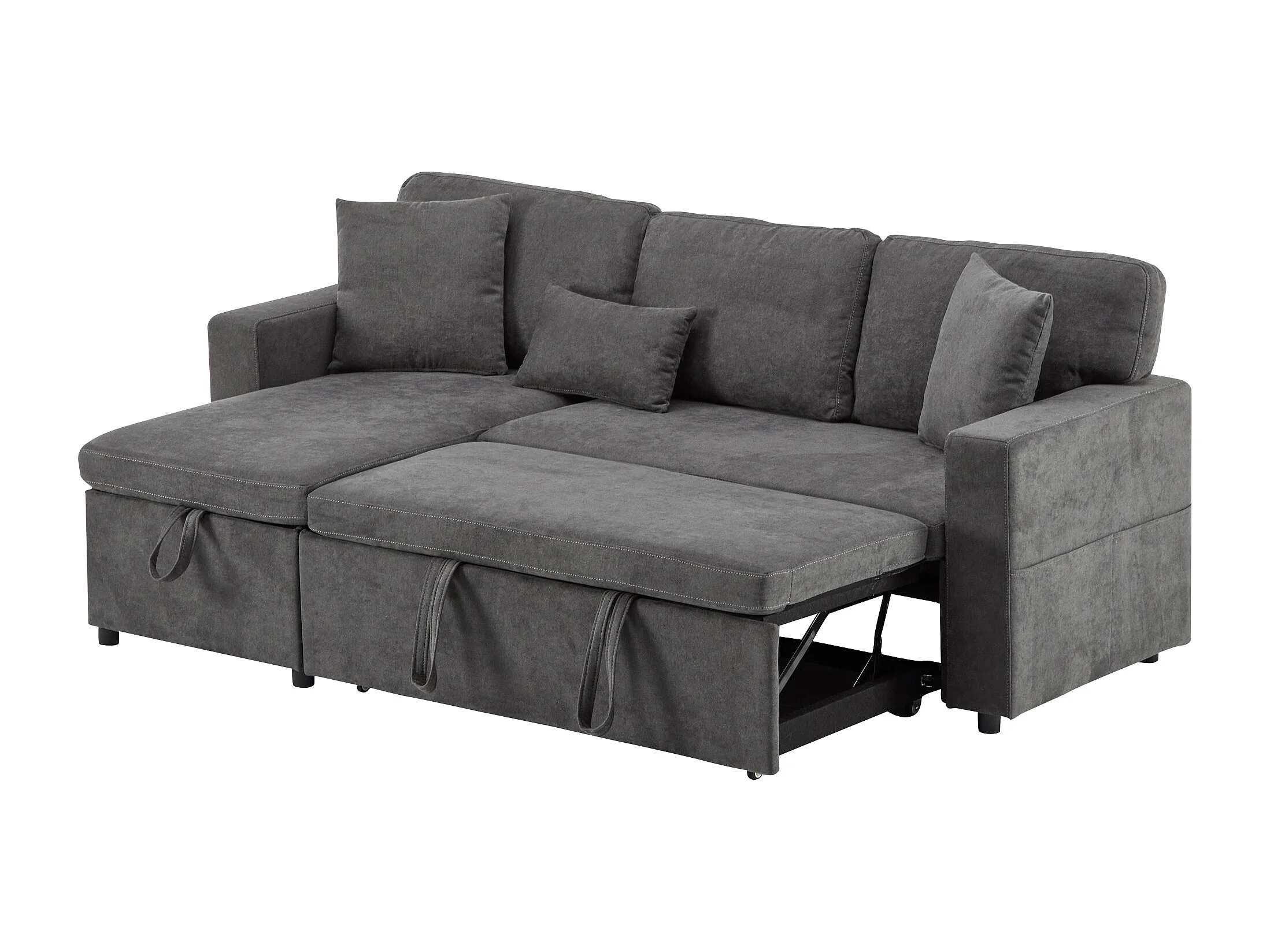 Canapé convertible 3 places en tissu Oxford avec rangement et port USB - Gris foncé