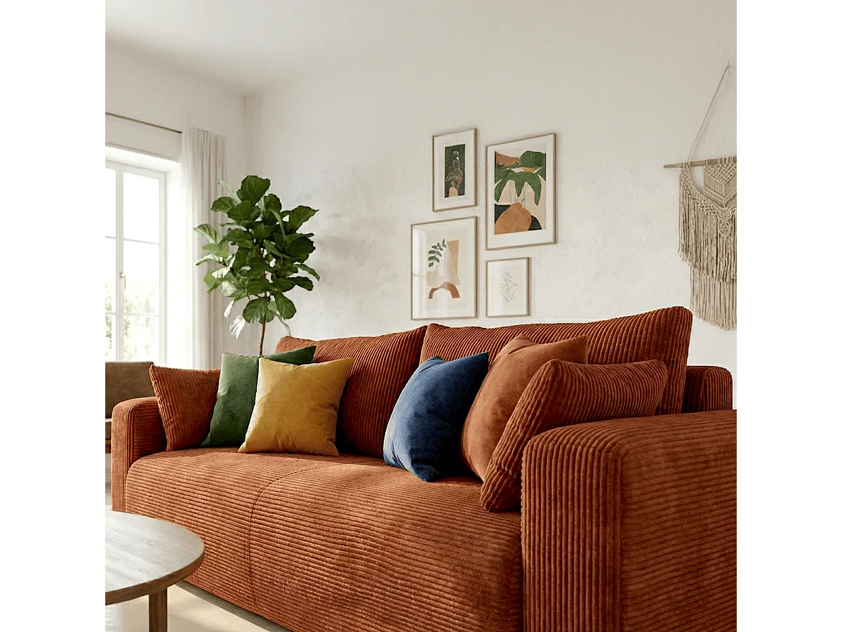 Canapé convertible 3 places en velours côtelé rouille - Fjord