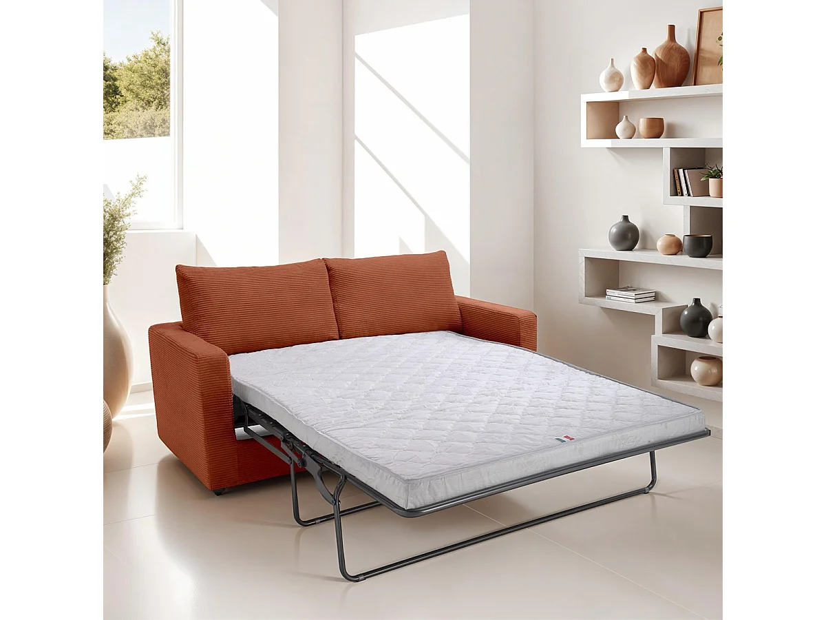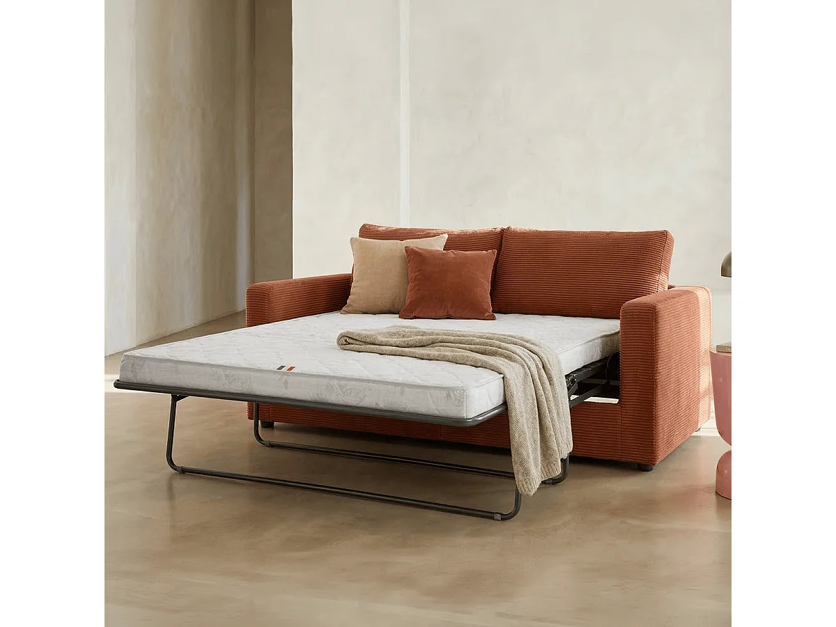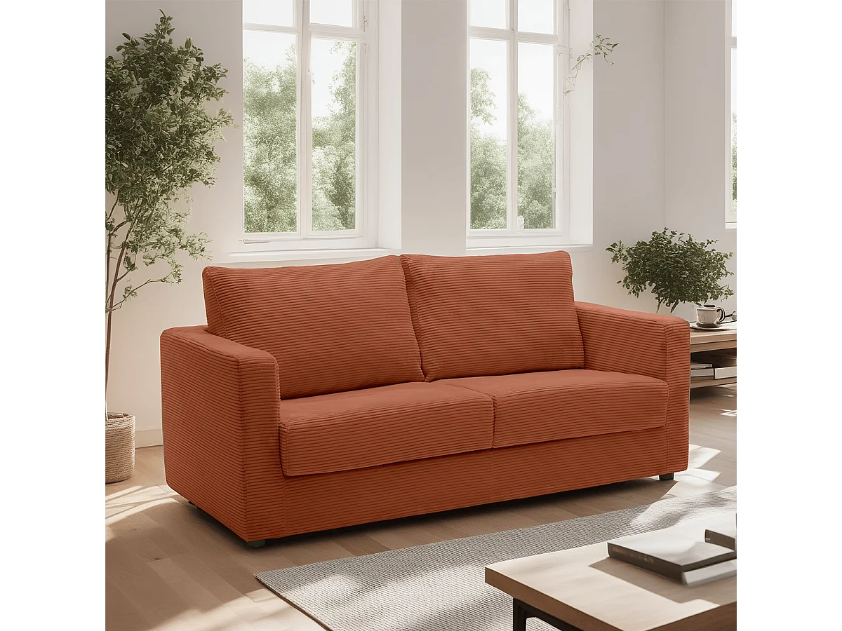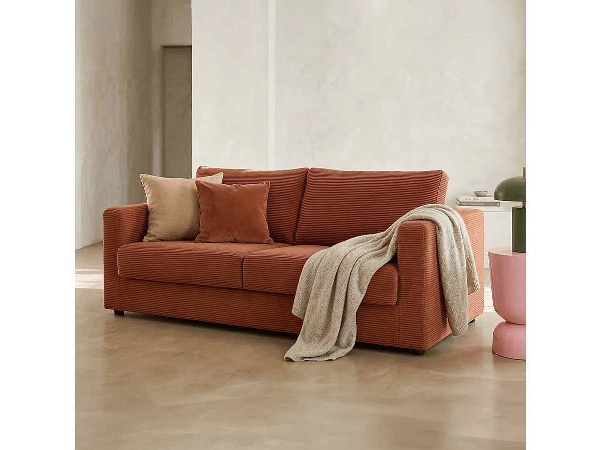 Canapé convertible 3 places en velours côtelé rouille - ouverture semi-express - Silvia