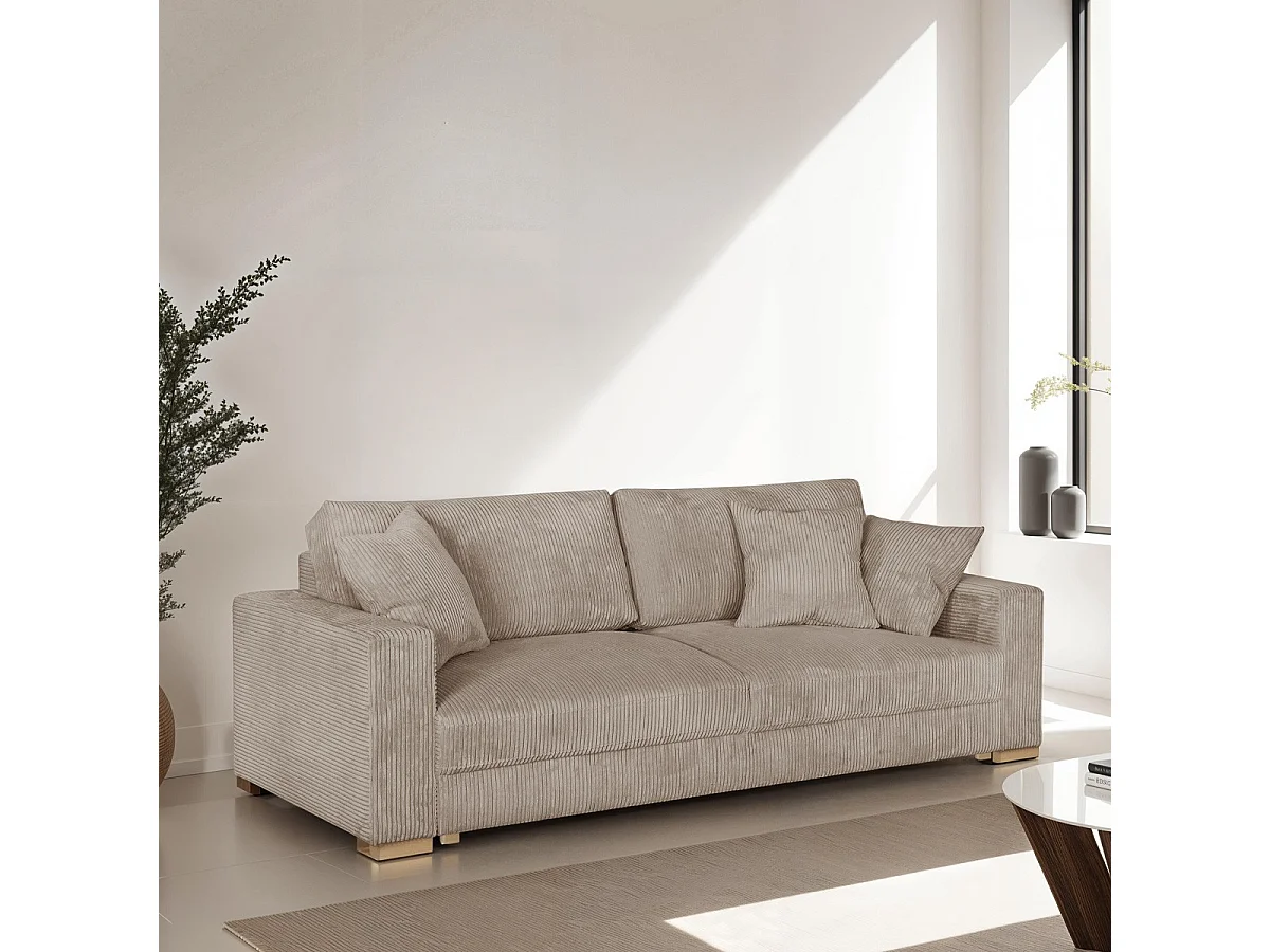 Canapé convertible 3 places en velours côtelé taupe - Robin