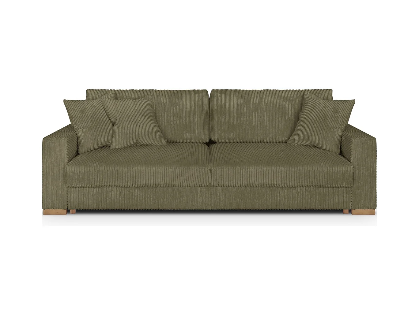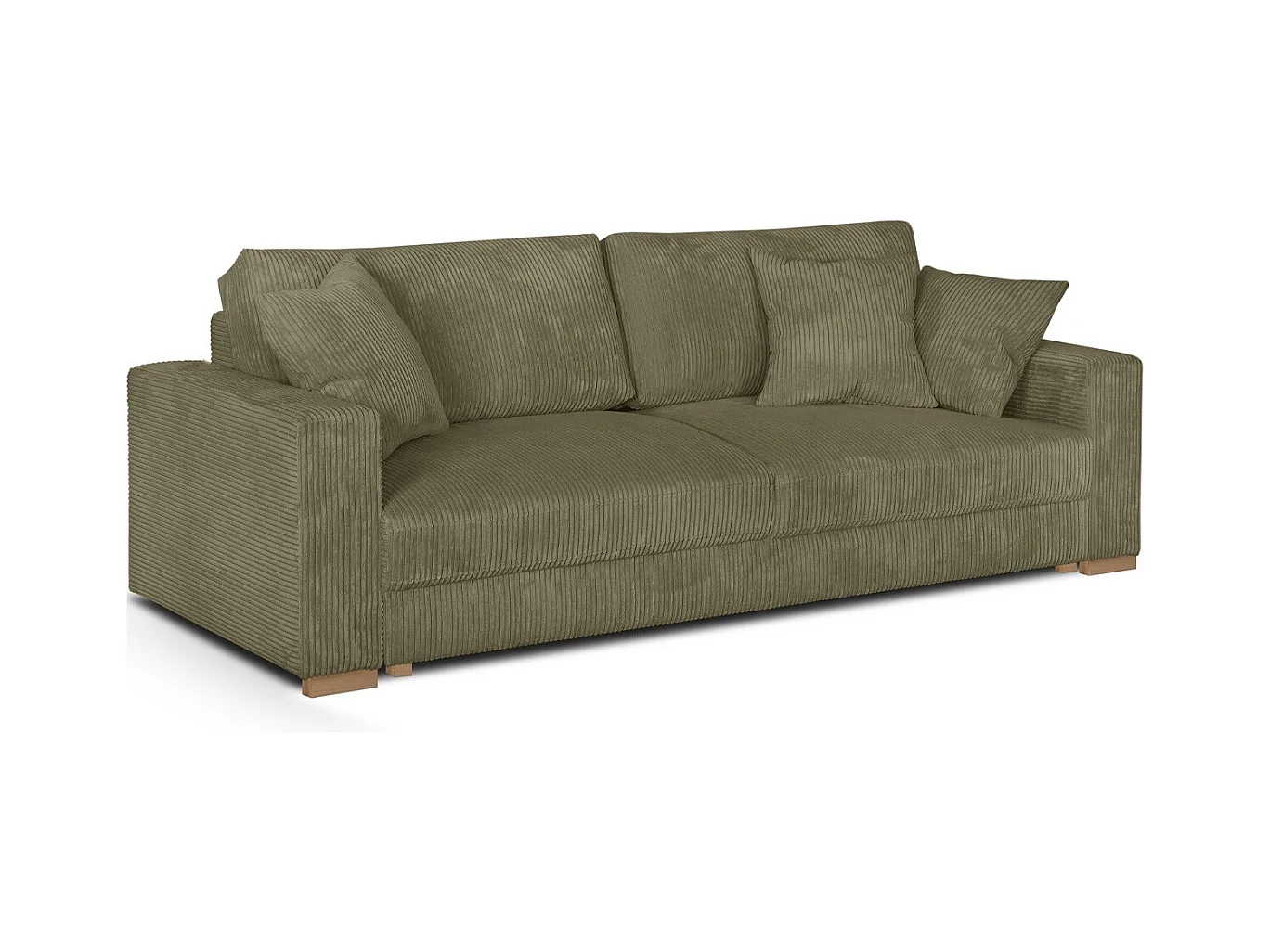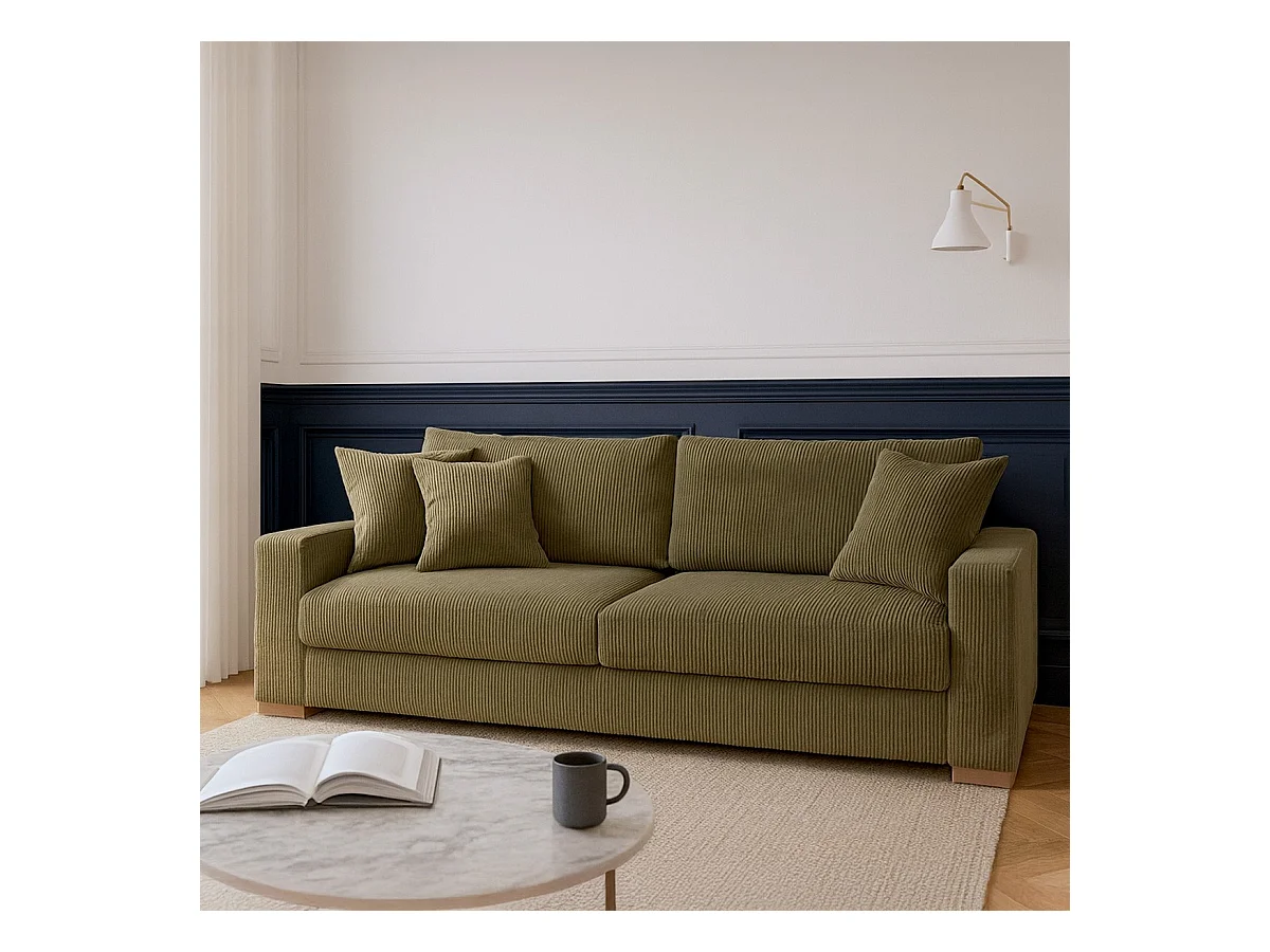 Canapé convertible 3 places en velours côtelé vert kaki - Robin