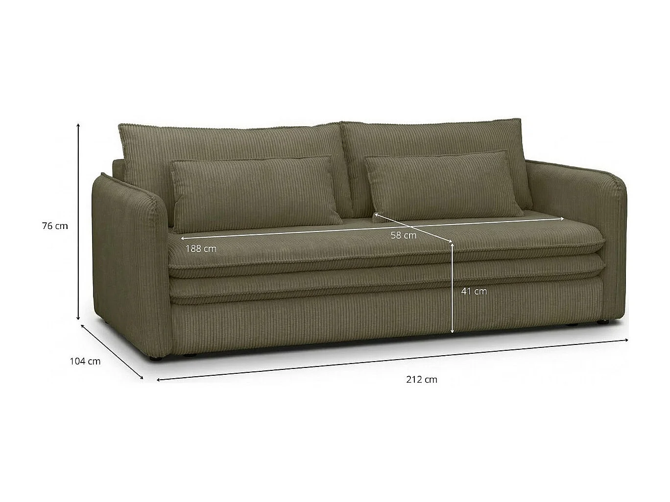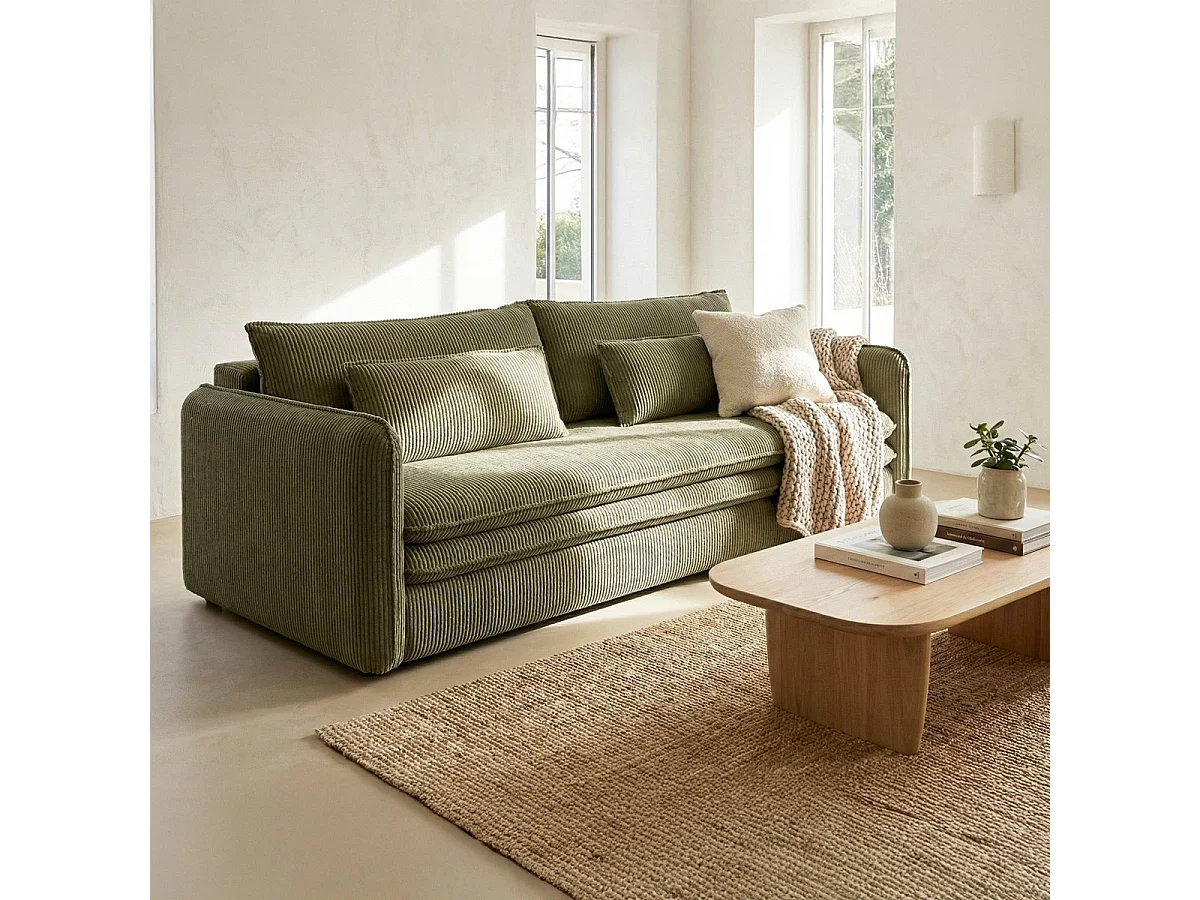 Canapé convertible 3 places en velours côtelé vert kaki - Baya