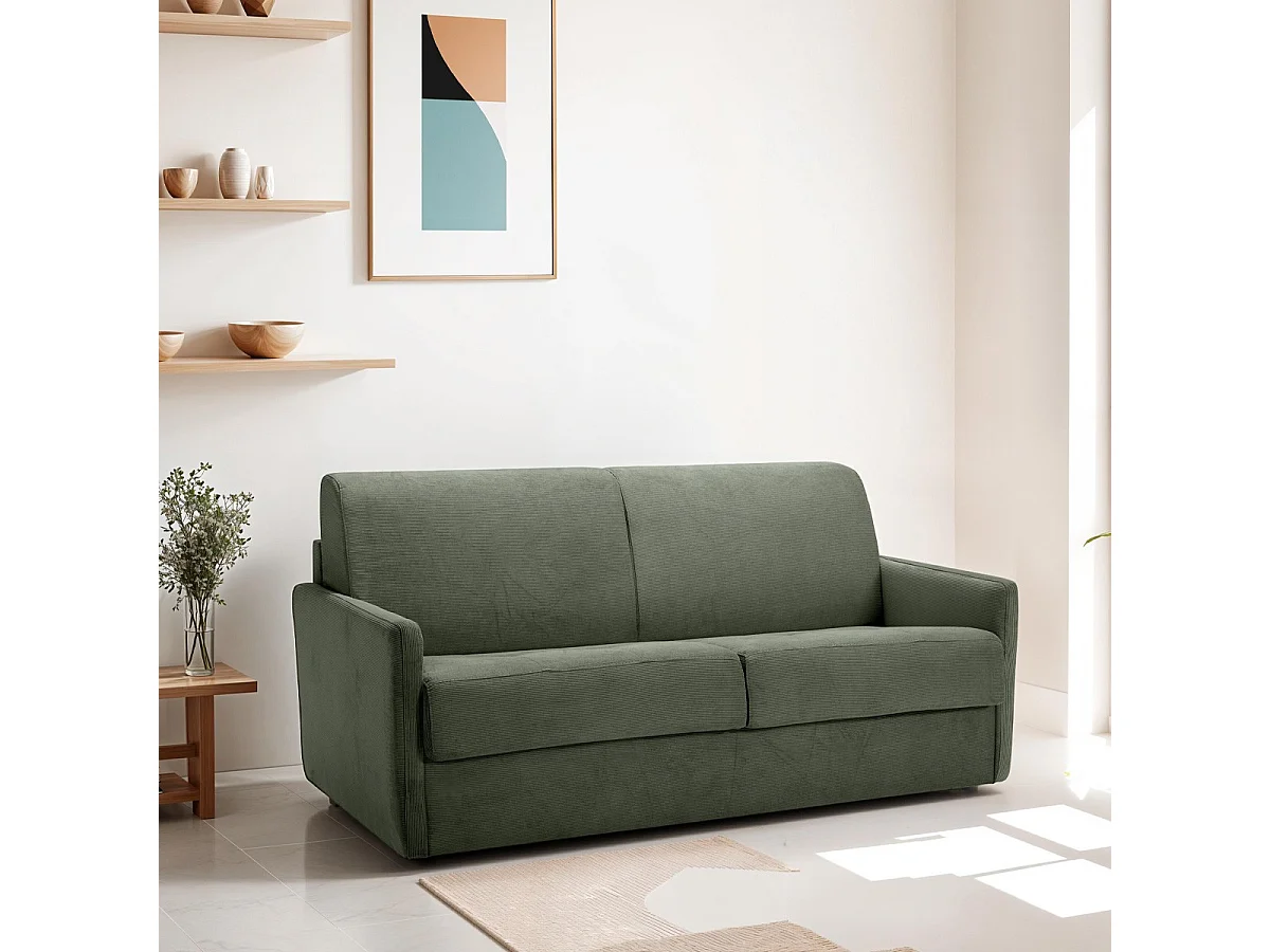 Canapé convertible 3 places en velours fines côtes vert - Ouverture express - Couchage quotidien - Matelas HD 140 x 190 - Sienne
