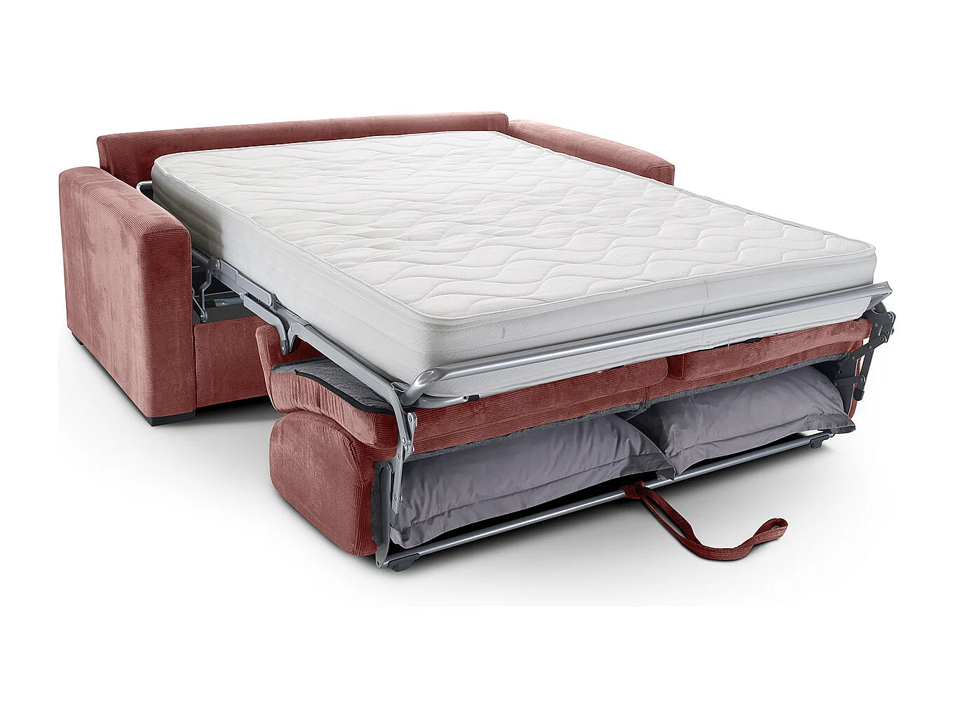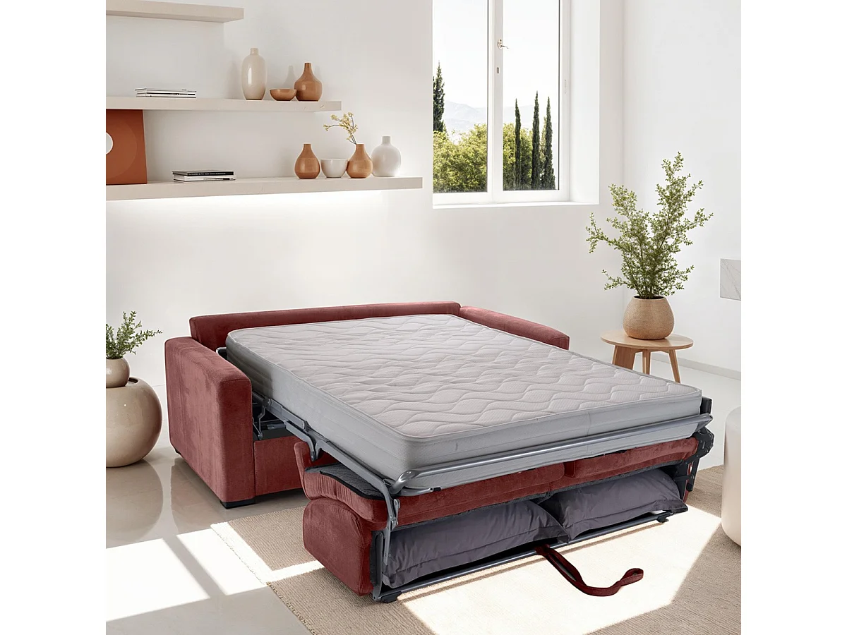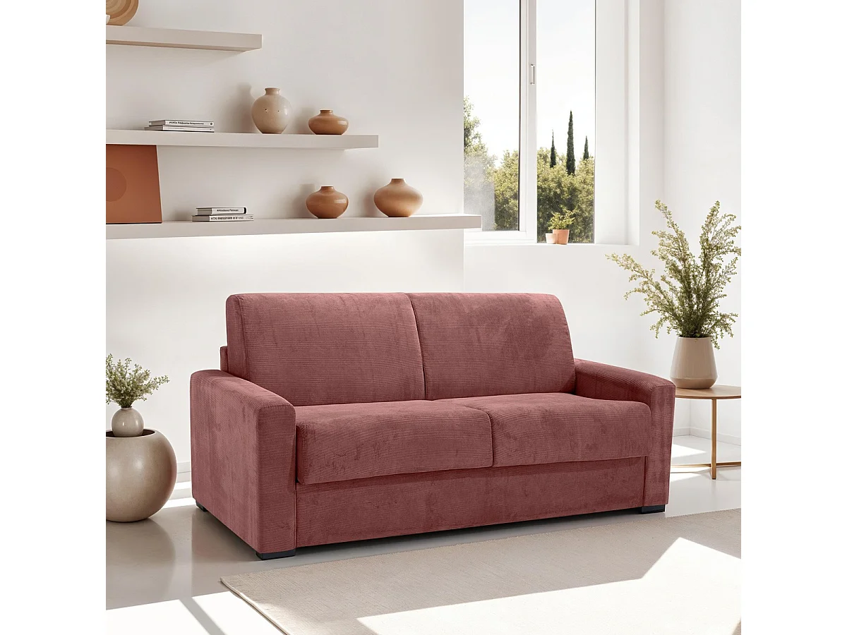 Canapé convertible 3 places en velours fines côtes veux rose - Ouverture express - Anzio