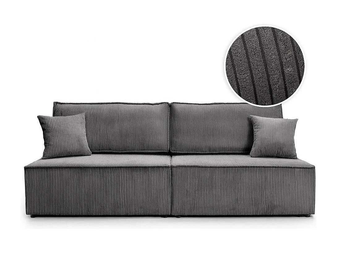Canapé convertible 3 places FIONA sans accoudoirs coffre de rangement velours côtelé - Gris anthracite
