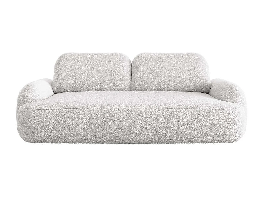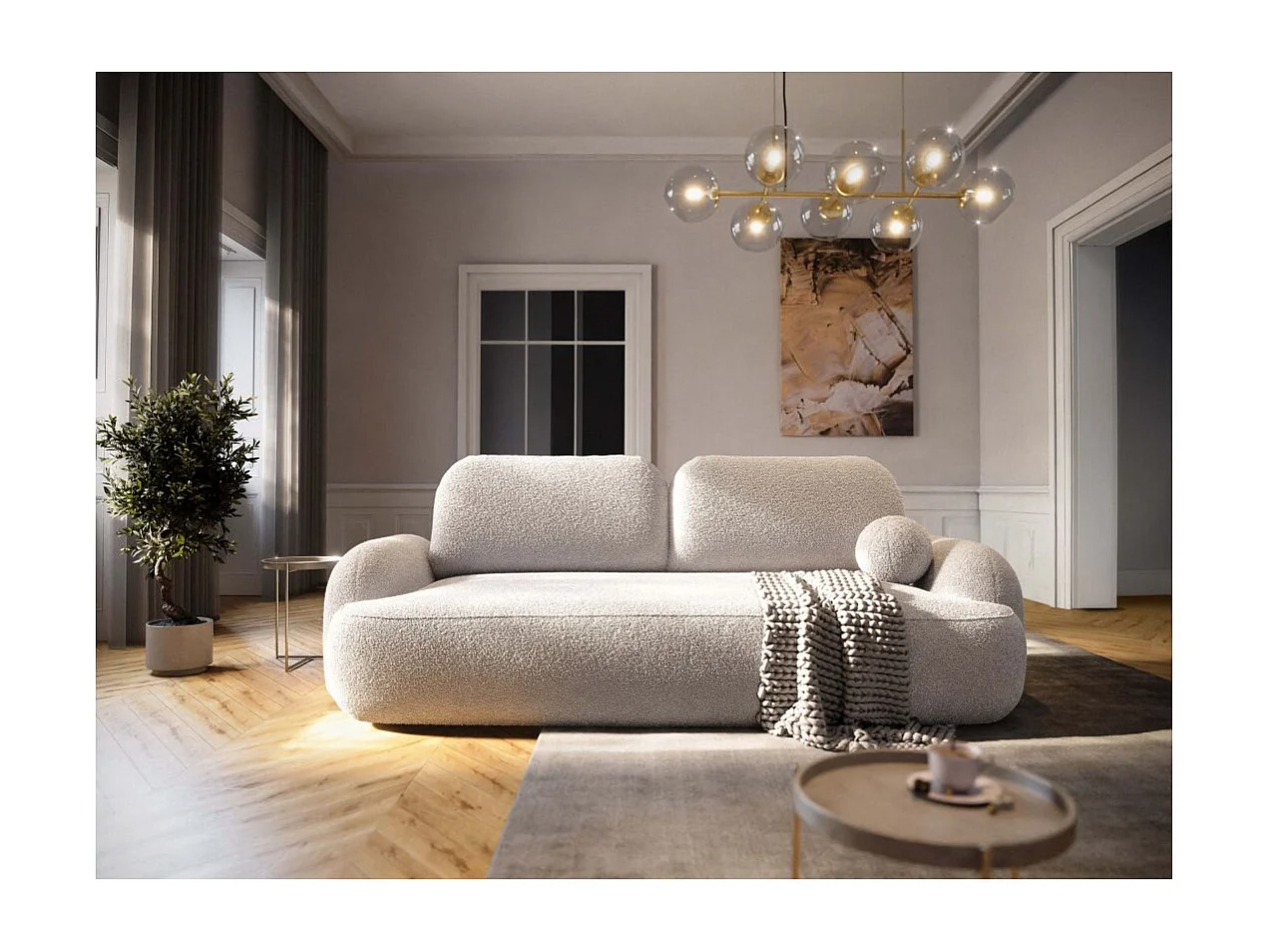 Canapé convertible 3 places MILLY avec coffre en tissu bouclette - Blanc