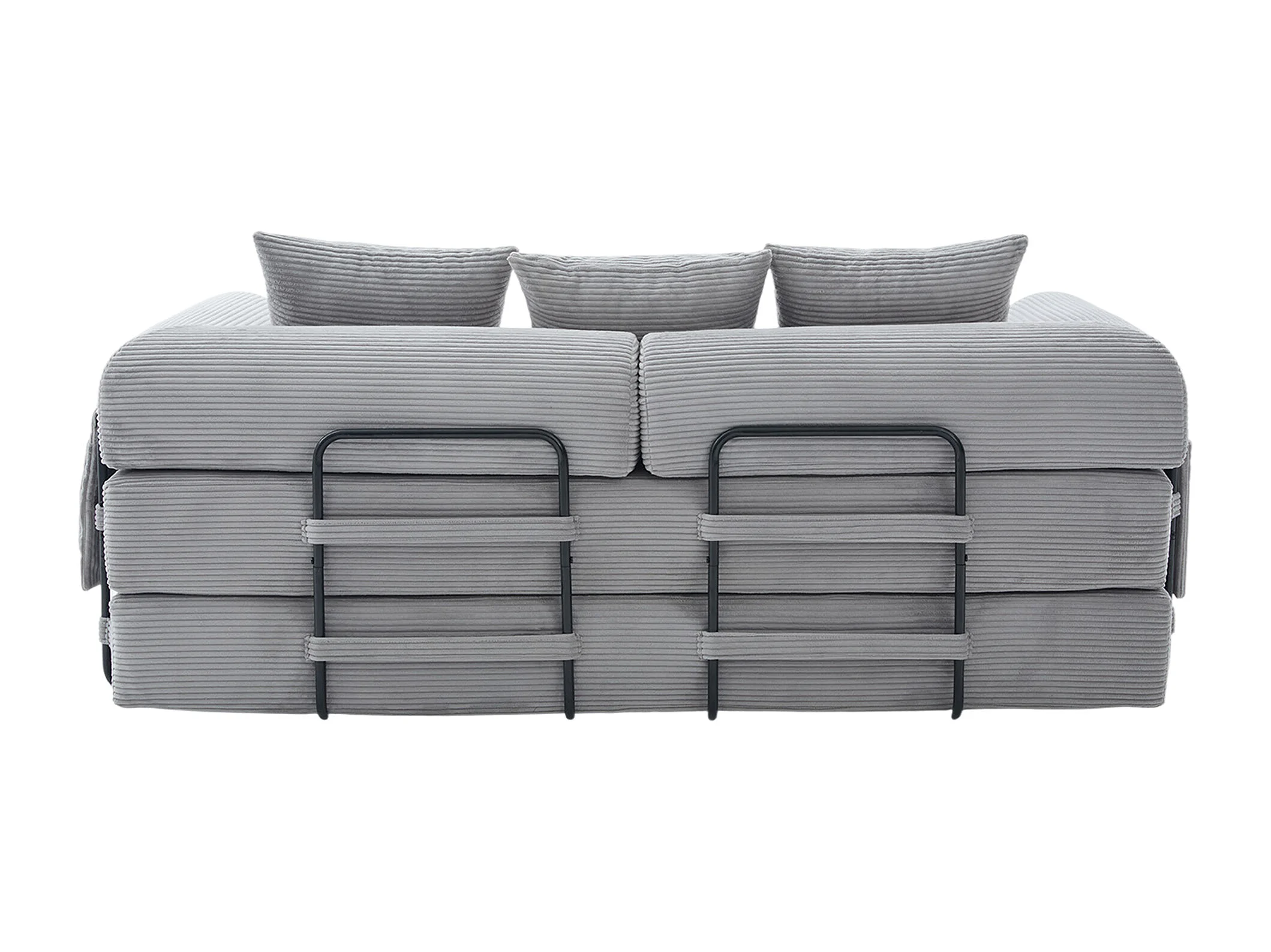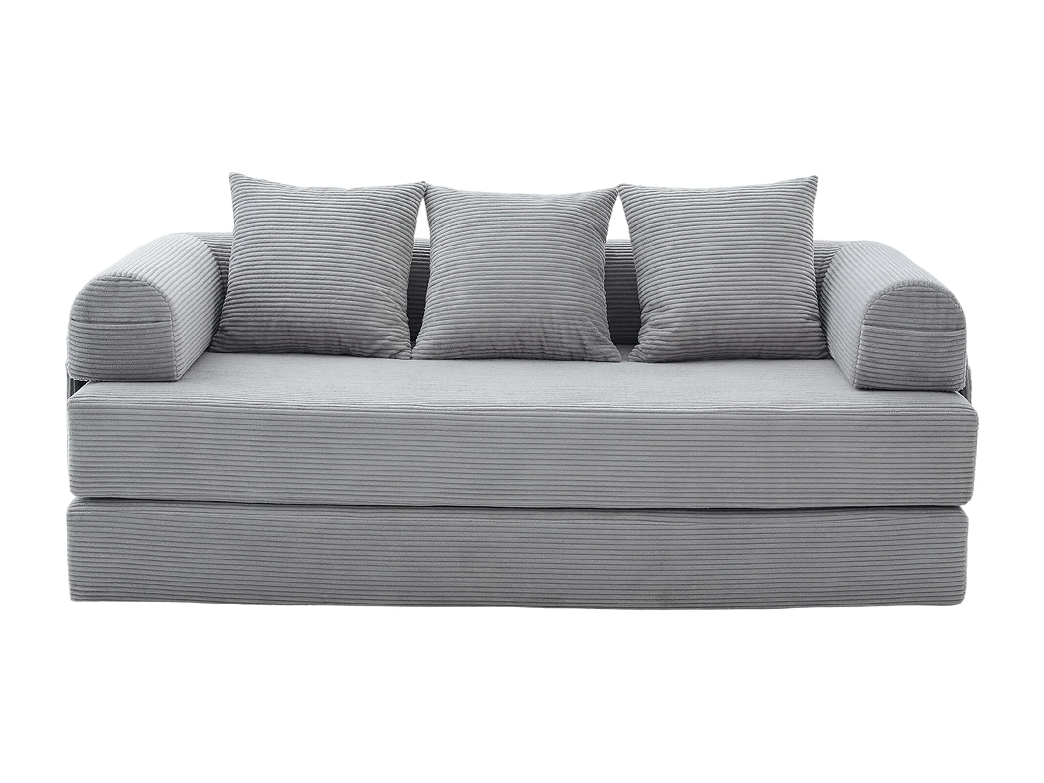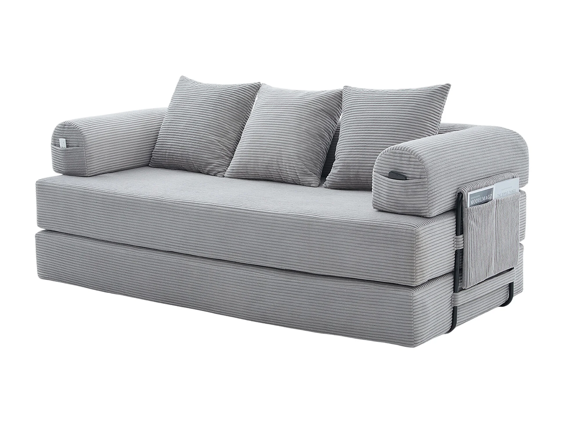 Canapé convertible 3 places modulable avec 3 coussins et poche latérale - Velours côtelé gris clair
