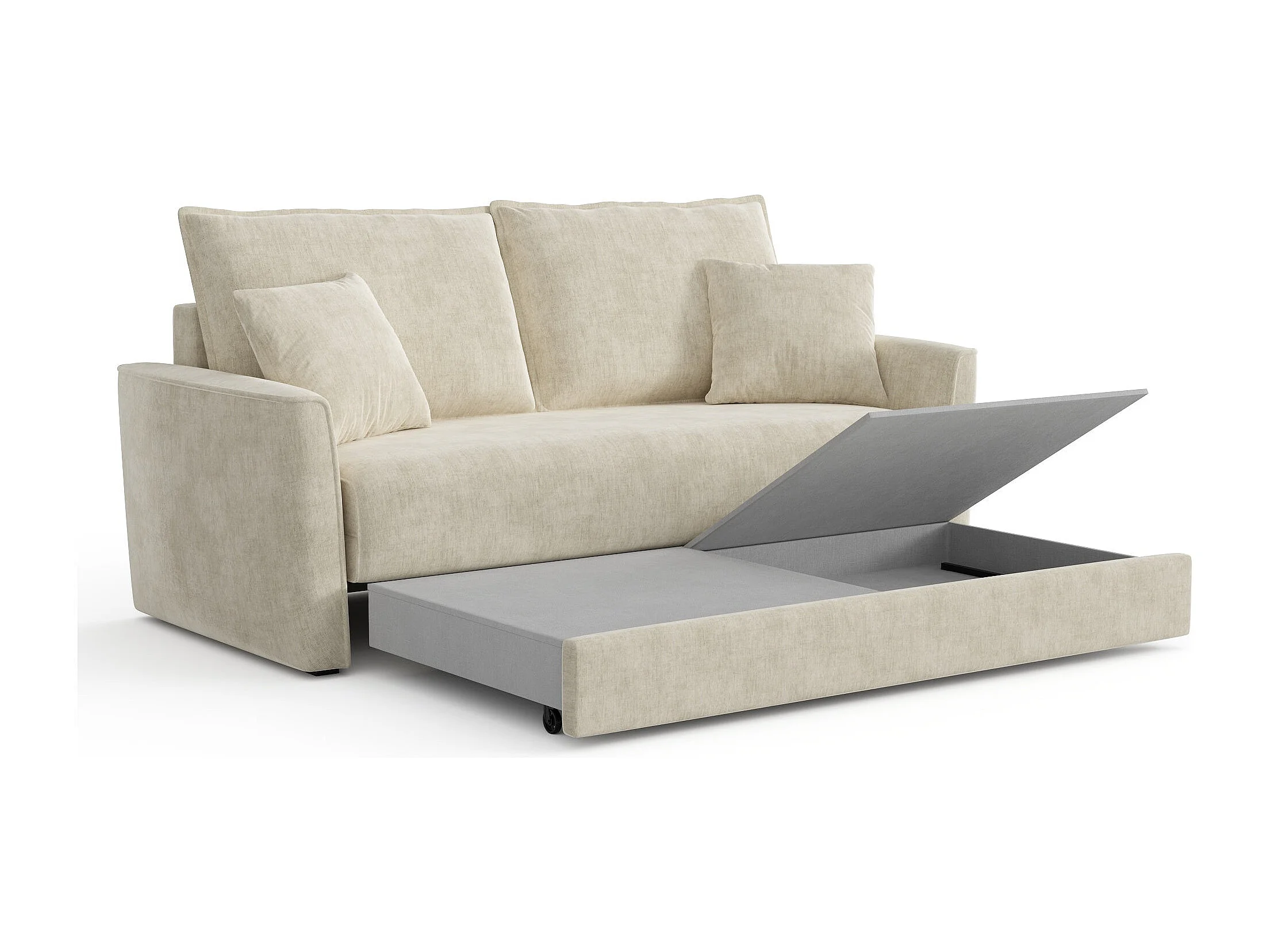 Canapé convertible 3 places tissu tramé touché doux crème 180cm LUXO