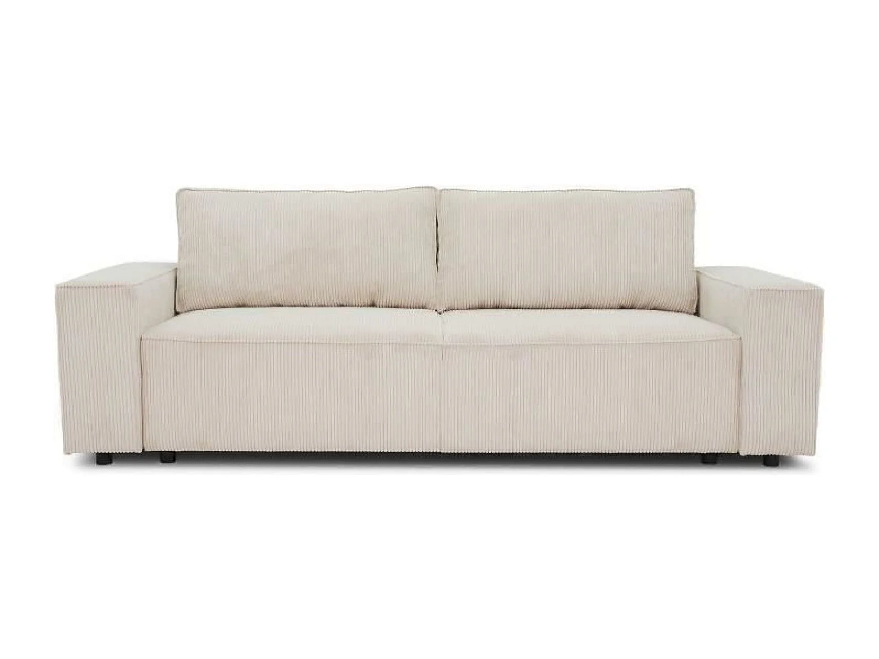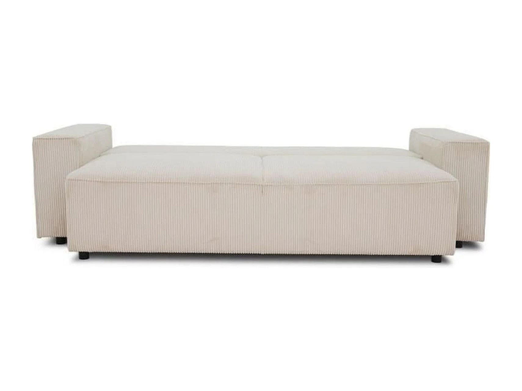 Canapé convertible 3 places tissu velours côtelé beige à coffre de rangement - 239 x 86 x Hauteur 85 cm