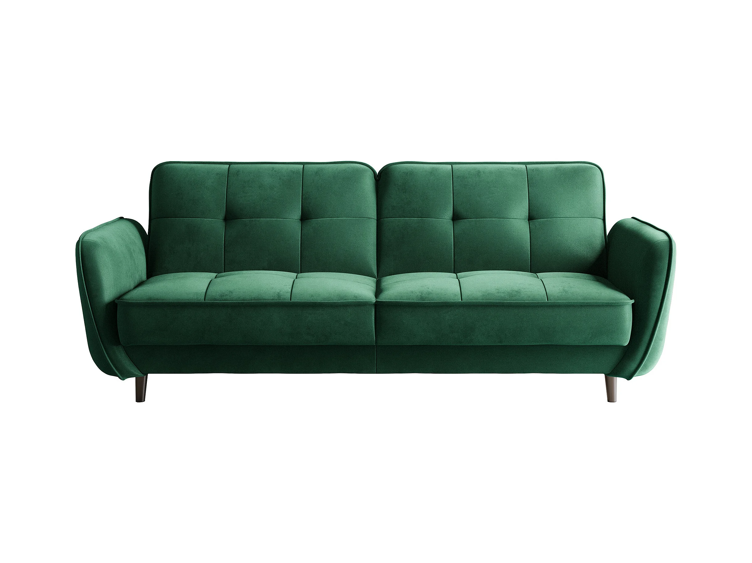 Canapé convertible 3 places tissu vert capitonné et pieds bois noir Bizza 220cm