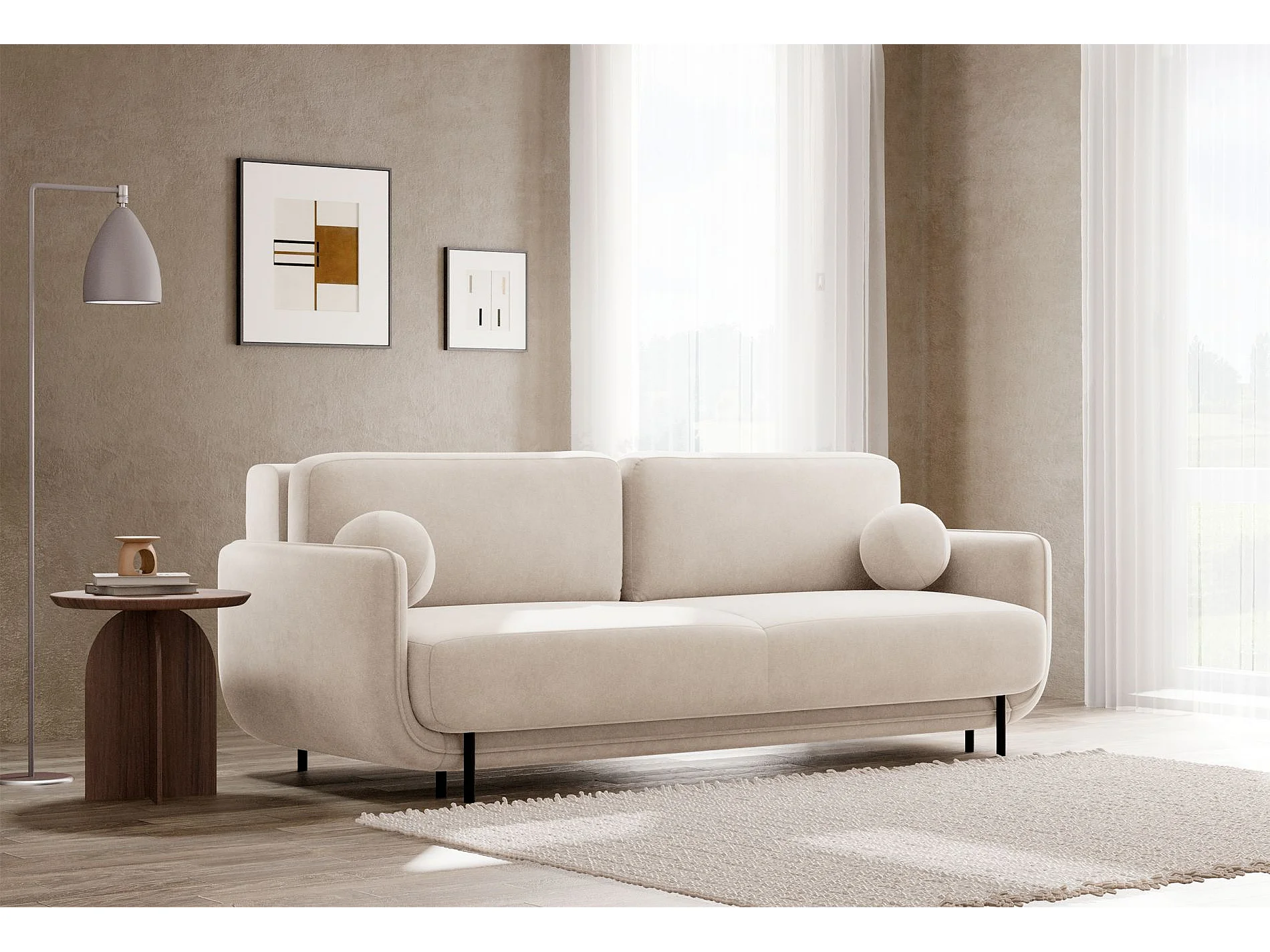 Canapé convertible 3 places – velours – beige clair – OVALS