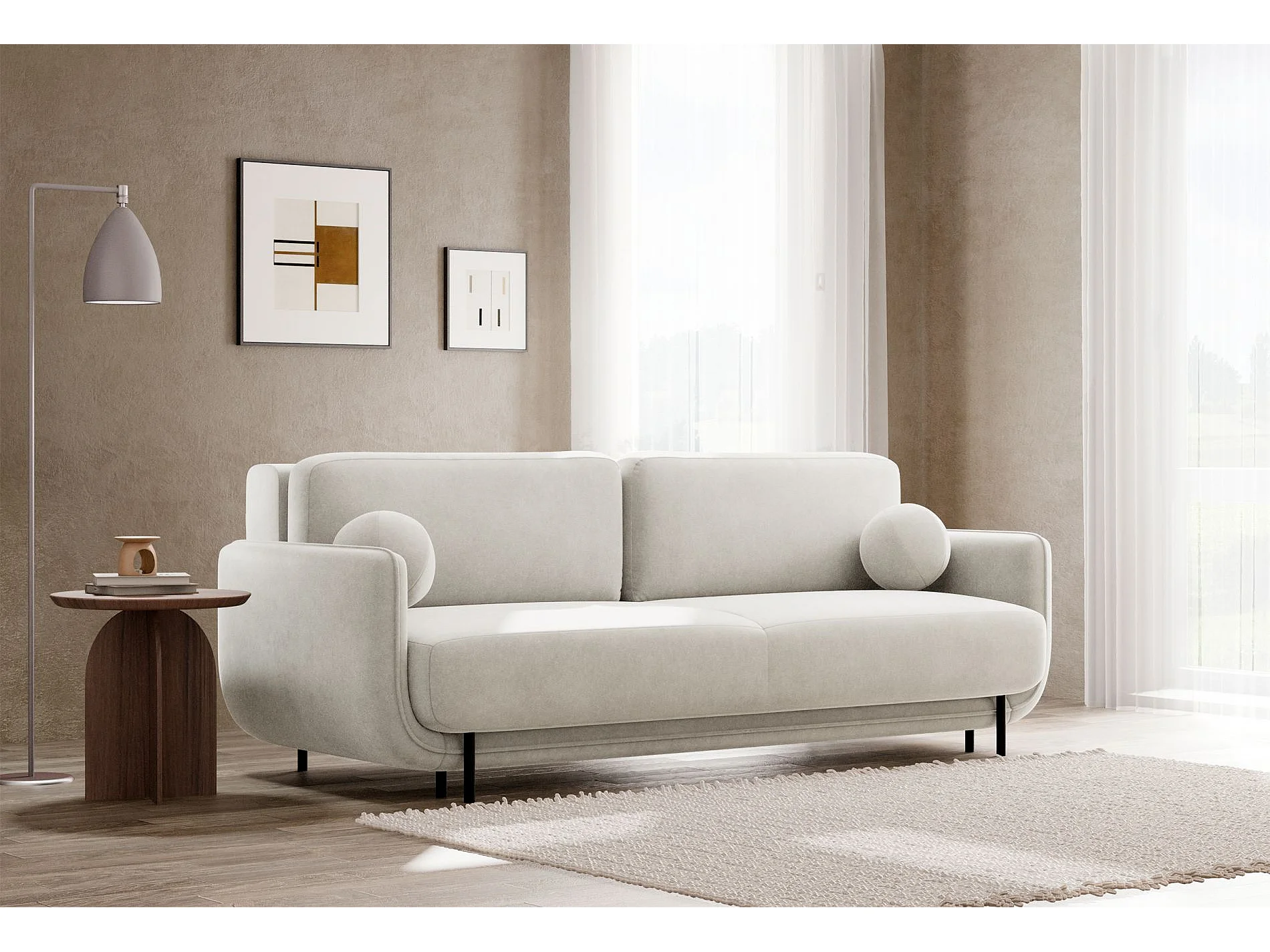 Canapé convertible 3 places – velours – crème – OVALS