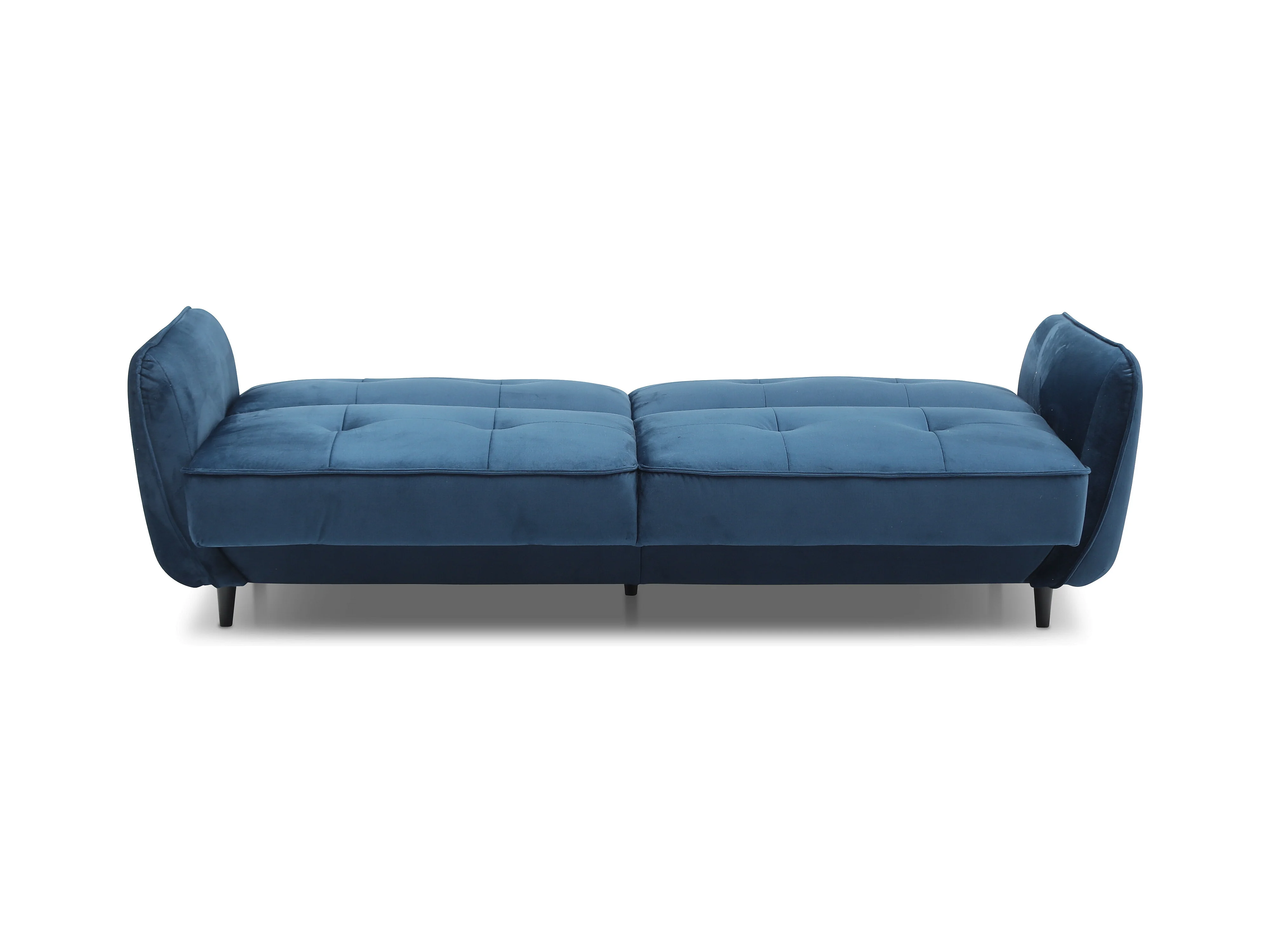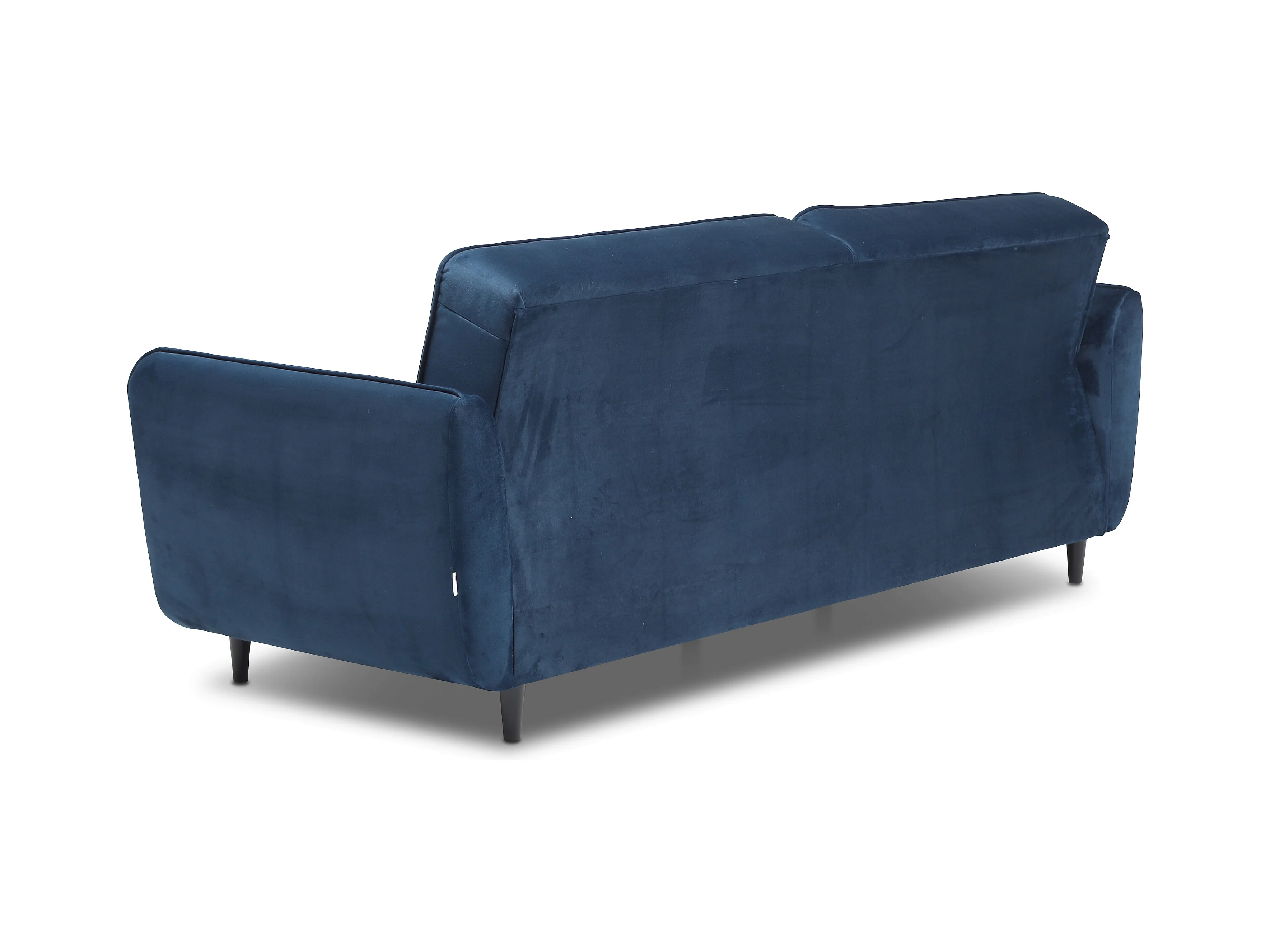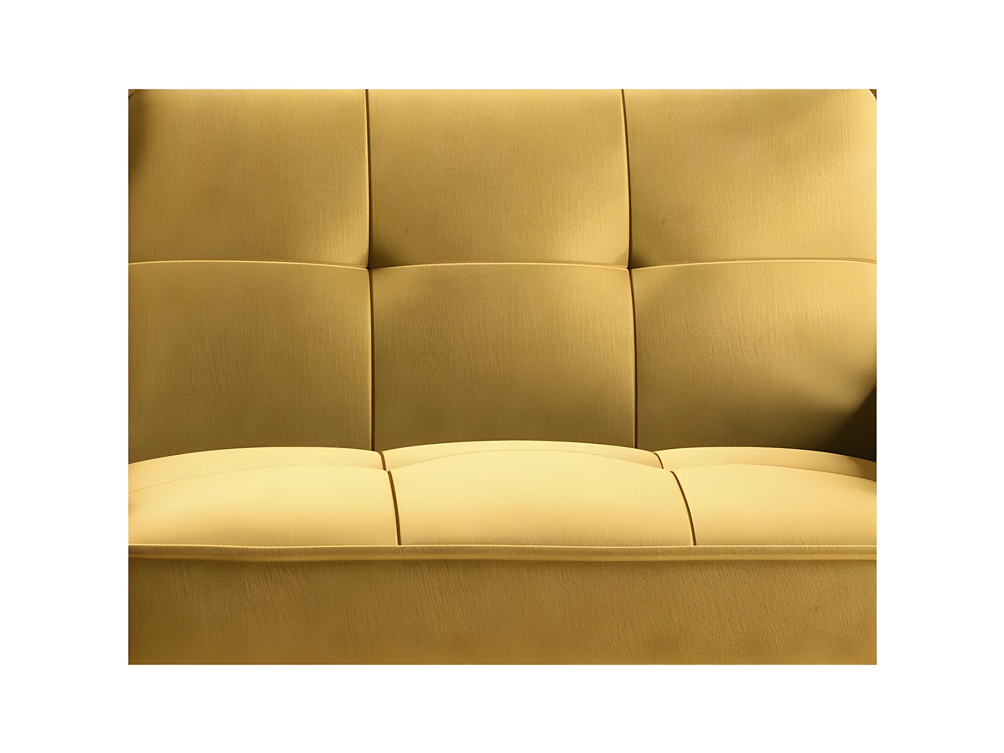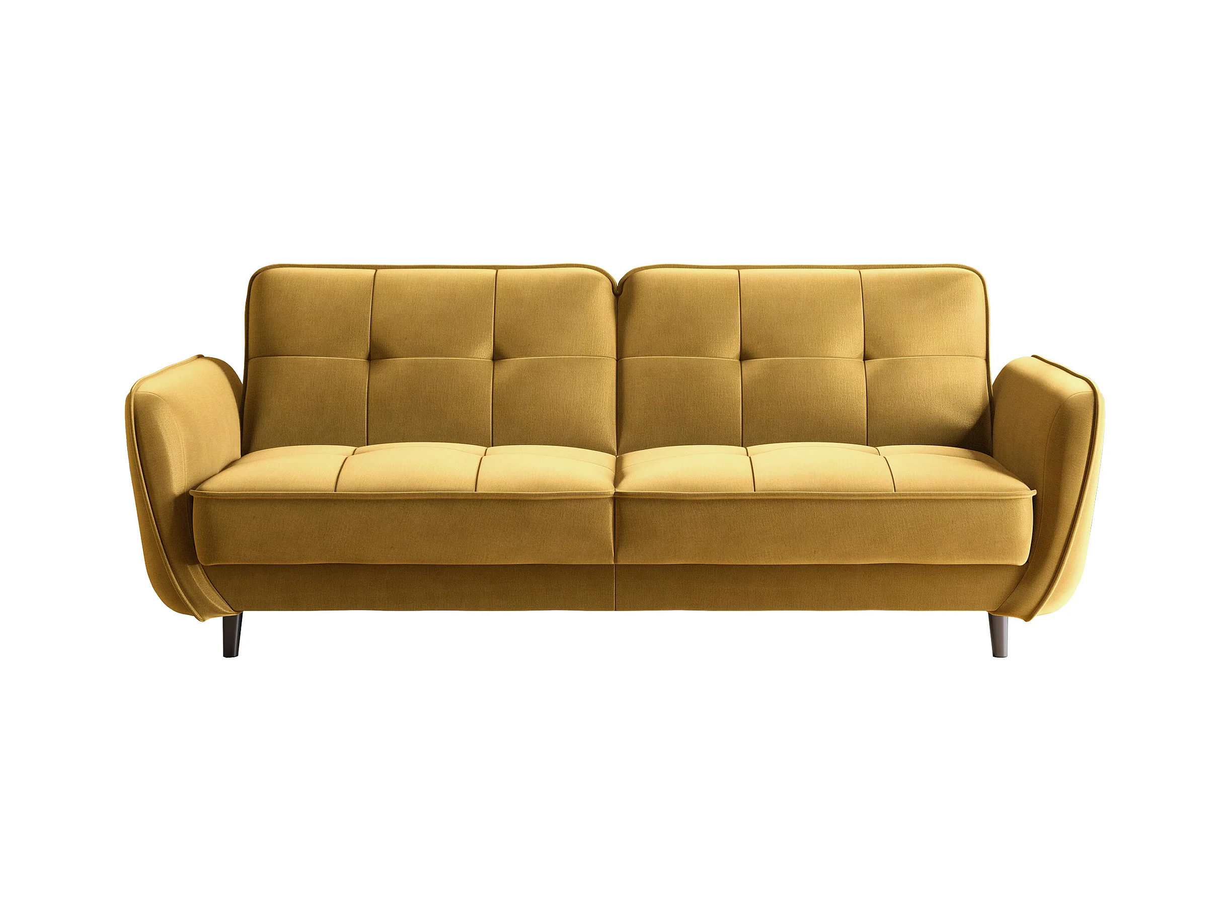 Canapé convertible 3 places velours jaune moutarde capitonné et pieds bois noir Bizza 220cm