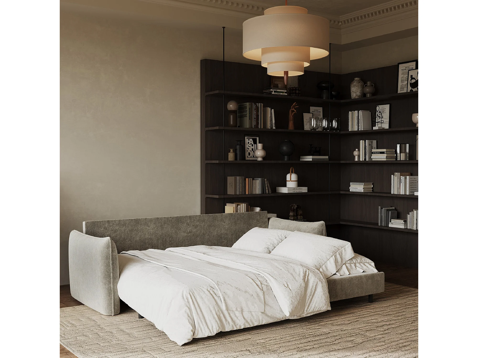 Canapé convertible 3 places velours texturé taupe 213cm PLUME