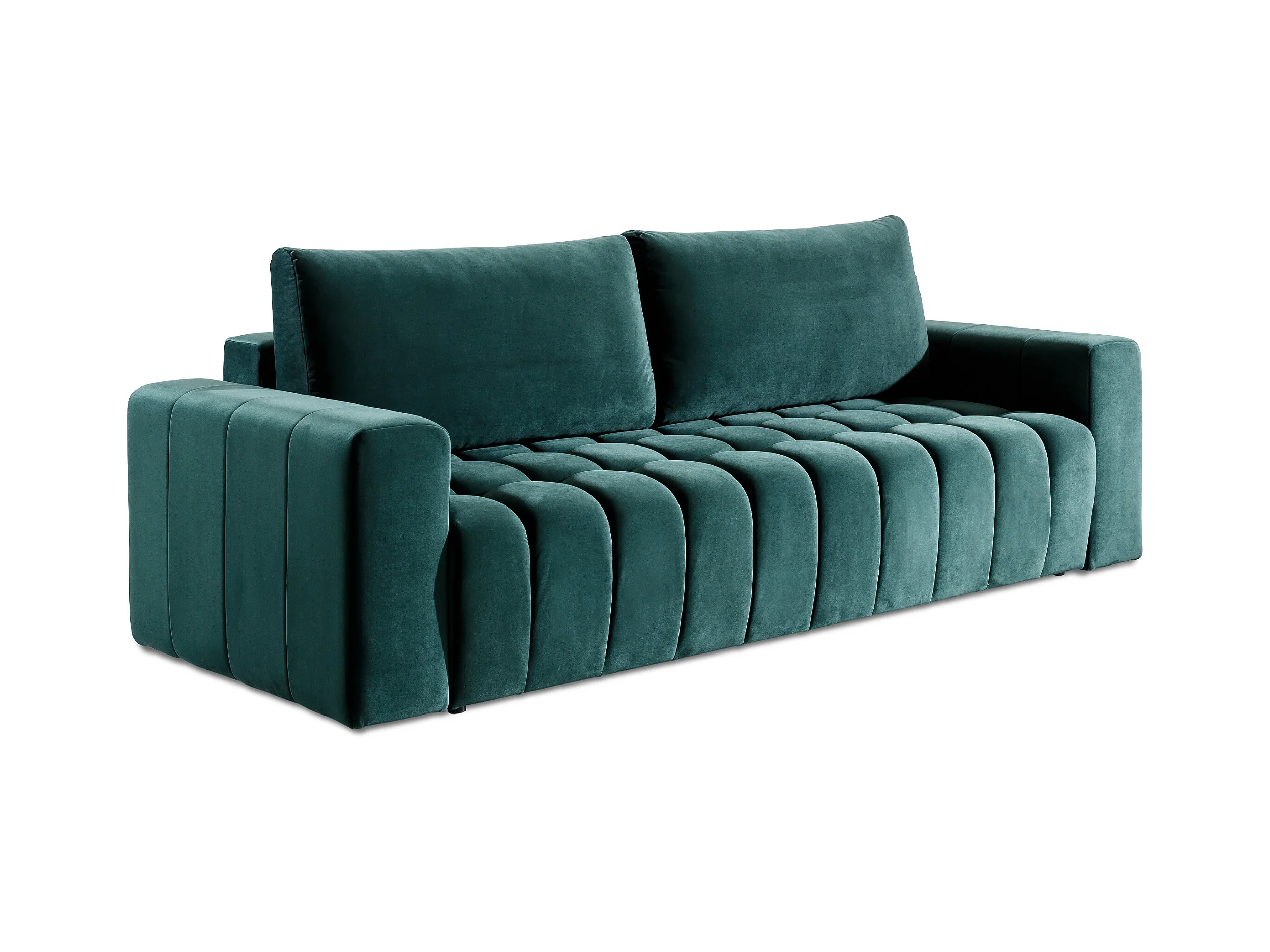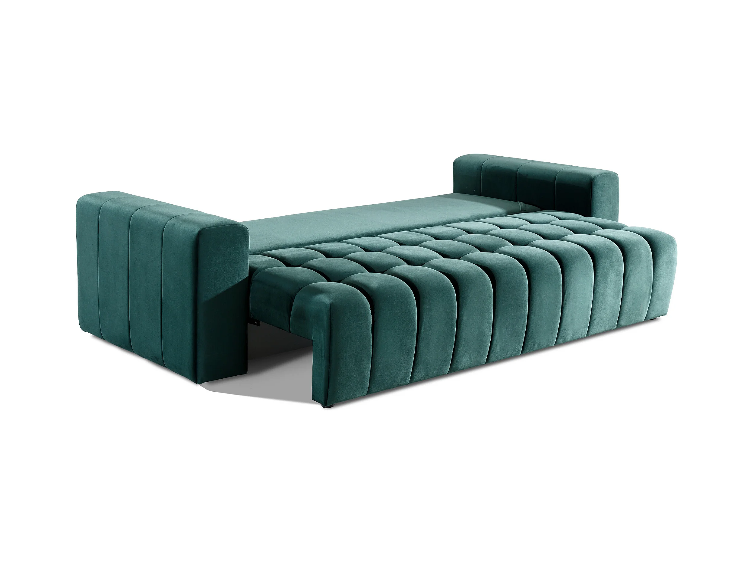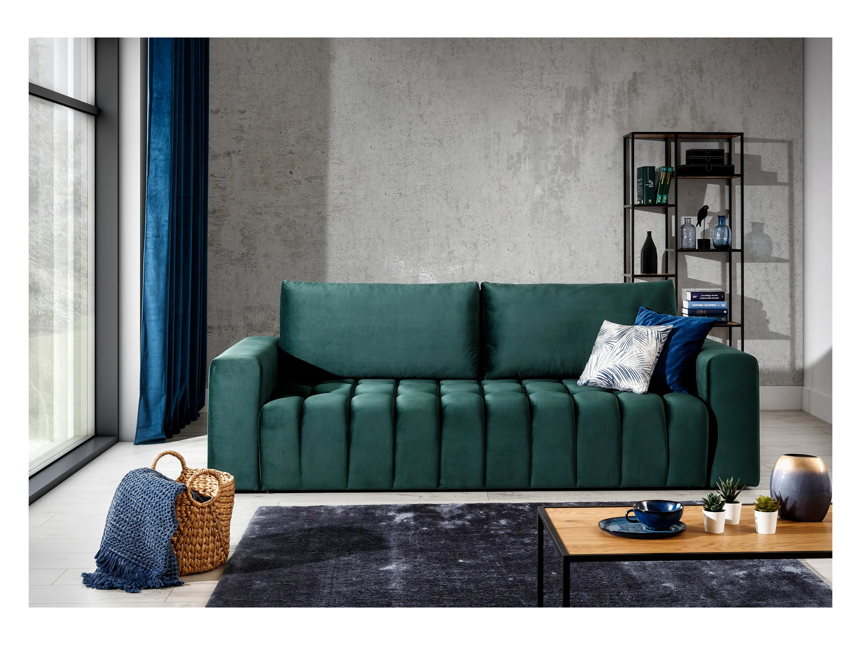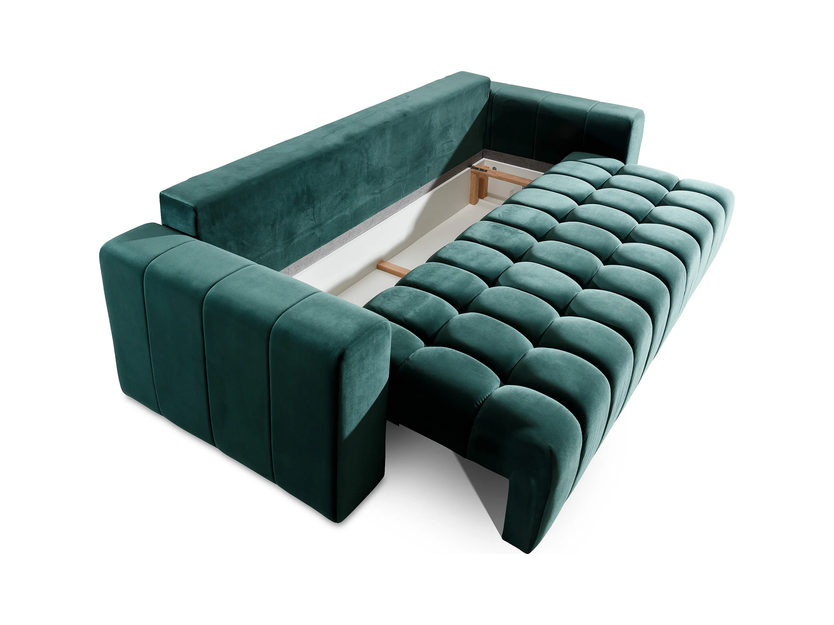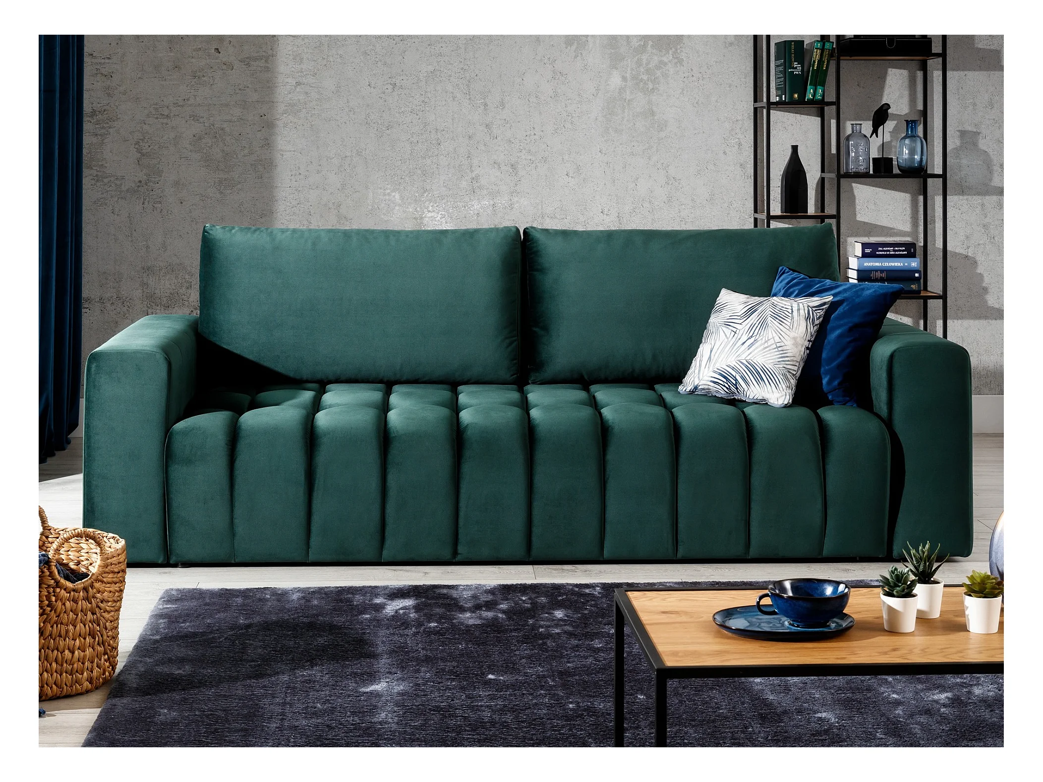 Canapé convertible 3 places velours vert avec coffre de rangement Larko 245cm