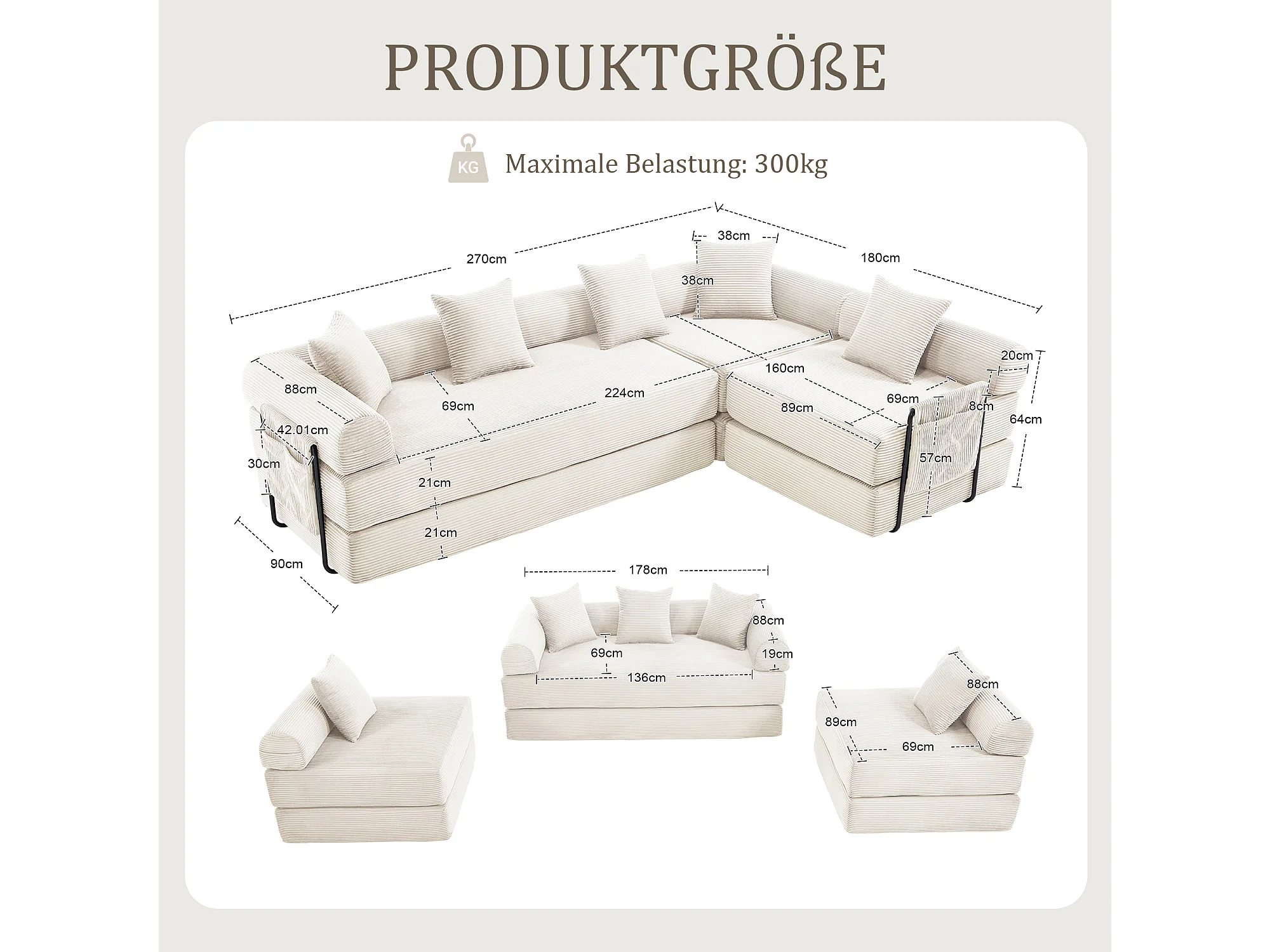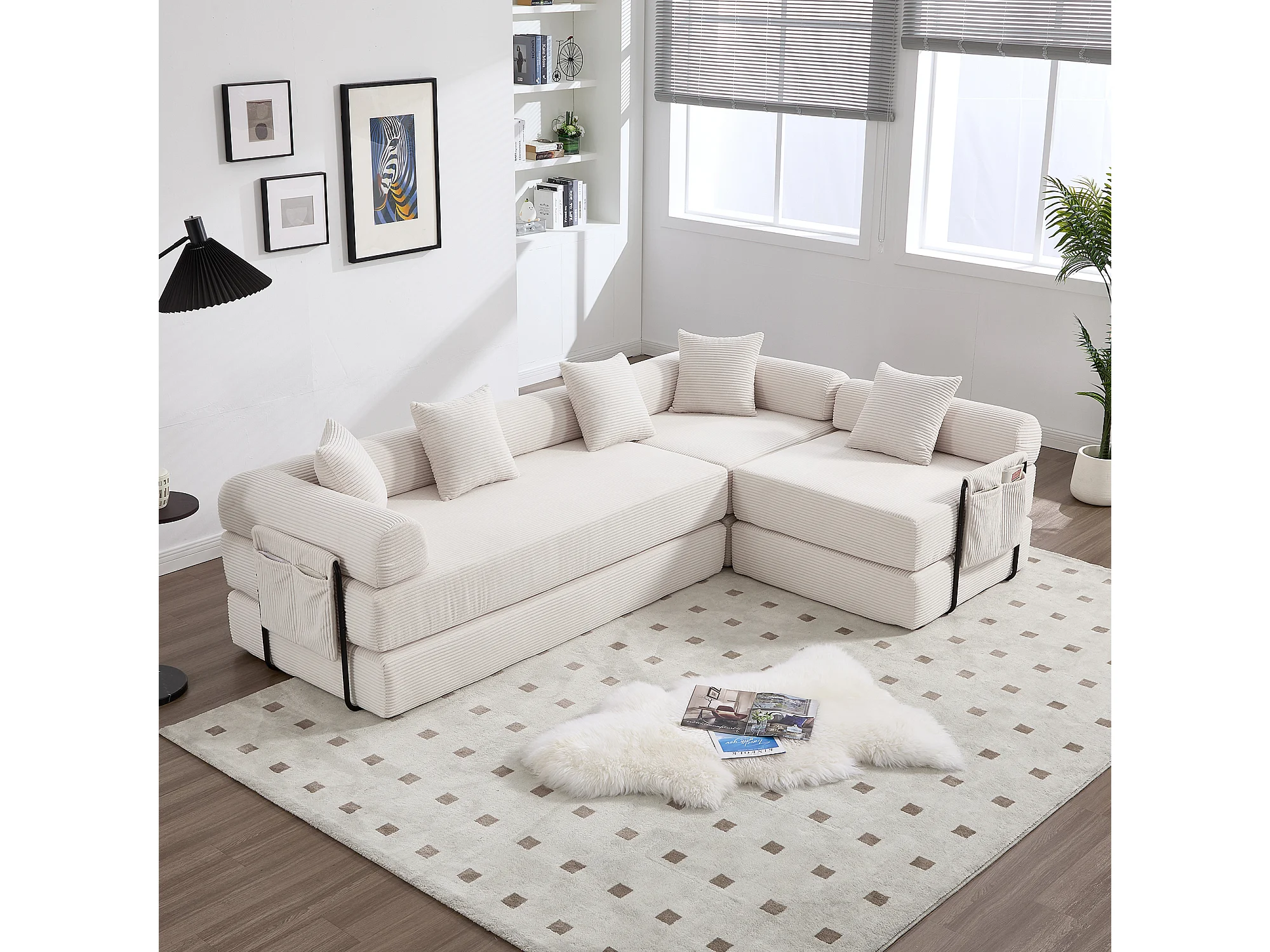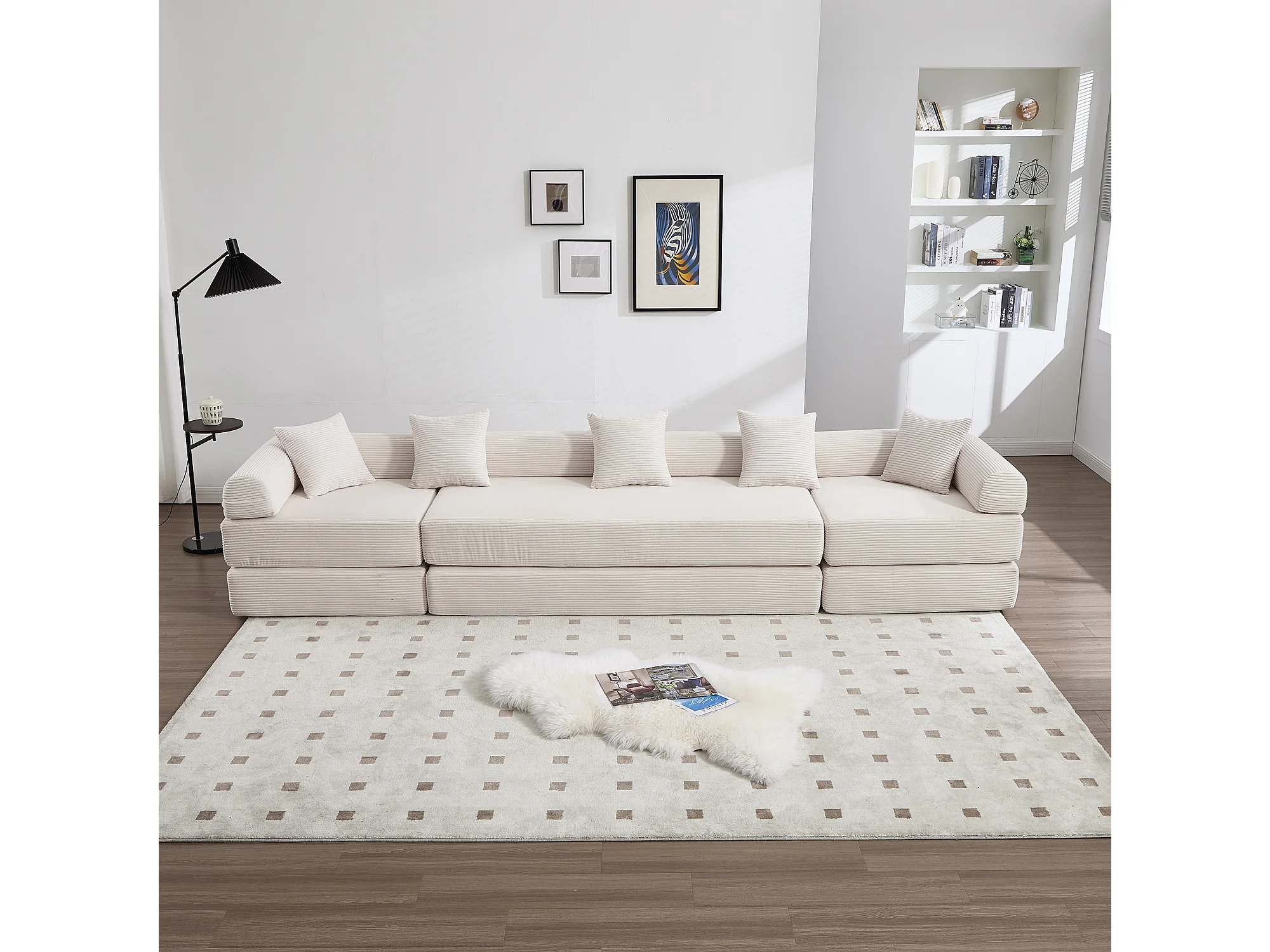 Canapé convertible 4 places - 270 x 180 x 64 cm - modules combinables à volonté - velours - beige