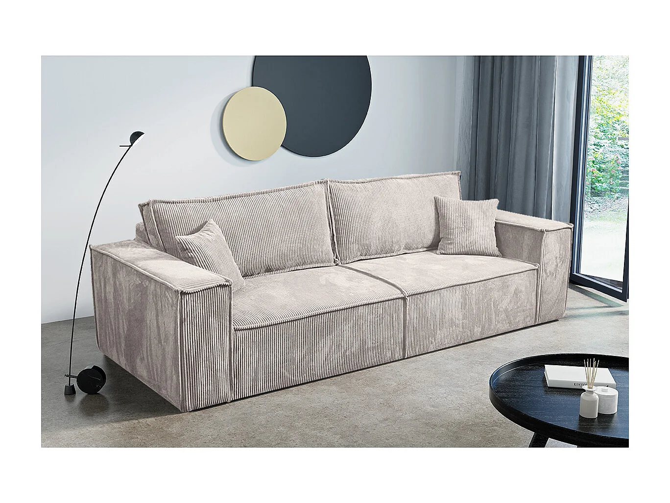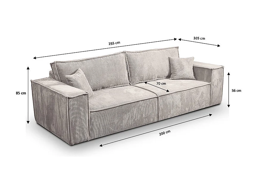 Canapé convertible 4 places avec coffre Isaac velours côtelé Blanc cassé