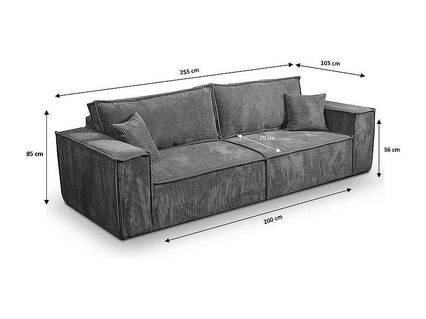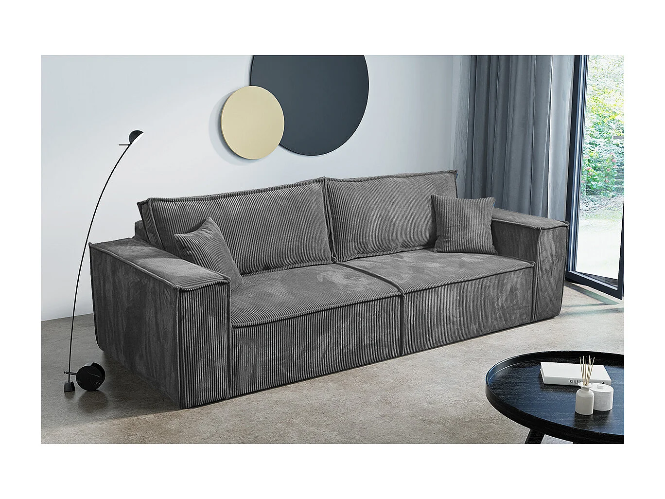 Canapé convertible 4 places avec coffre Isaac velours côtelé Gris