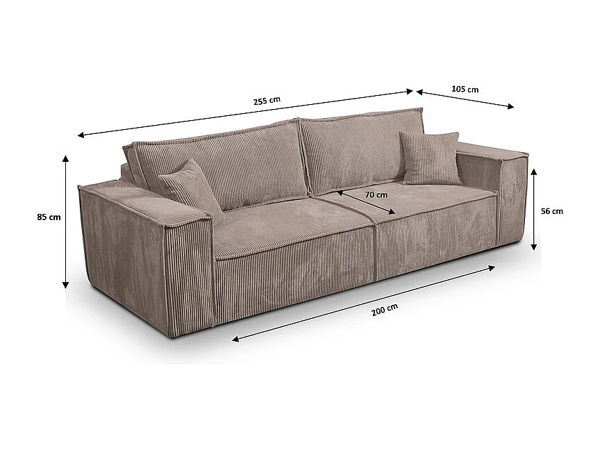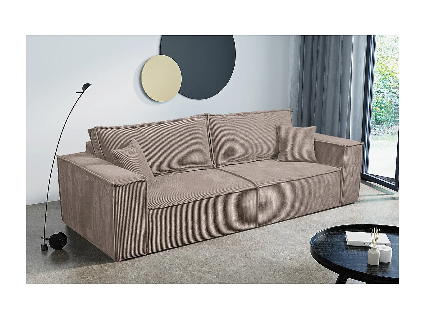 Canapé convertible 4 places avec coffre Isaac velours côtelé Taupe