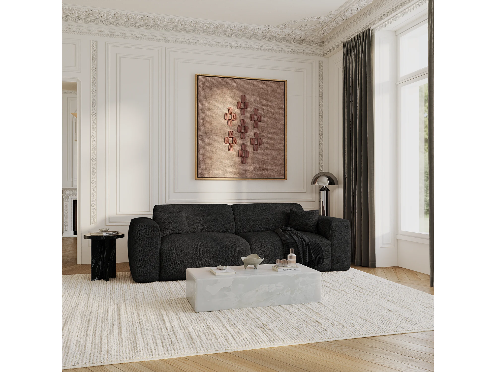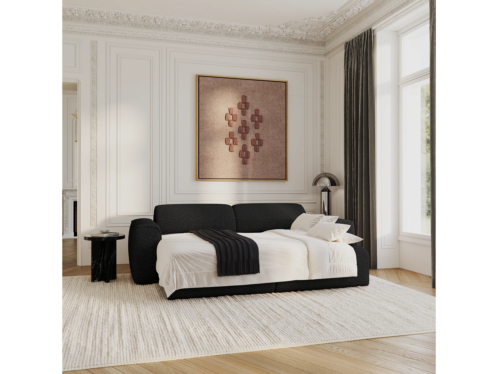 Canapé convertible 4 places bouclette noir YUMA