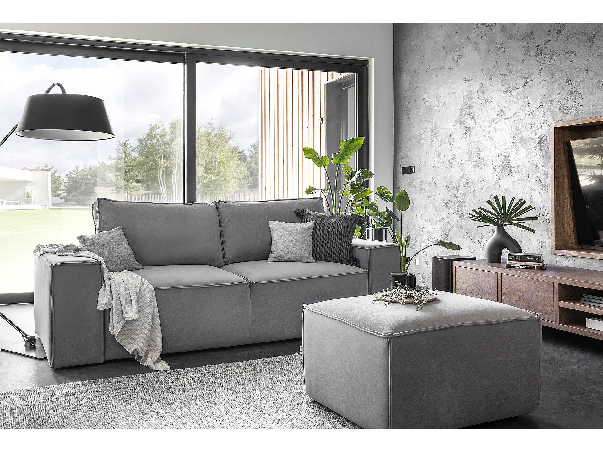 Grand canapé convertible en velours WILACE - Confort moderne et élégant-Gris clair