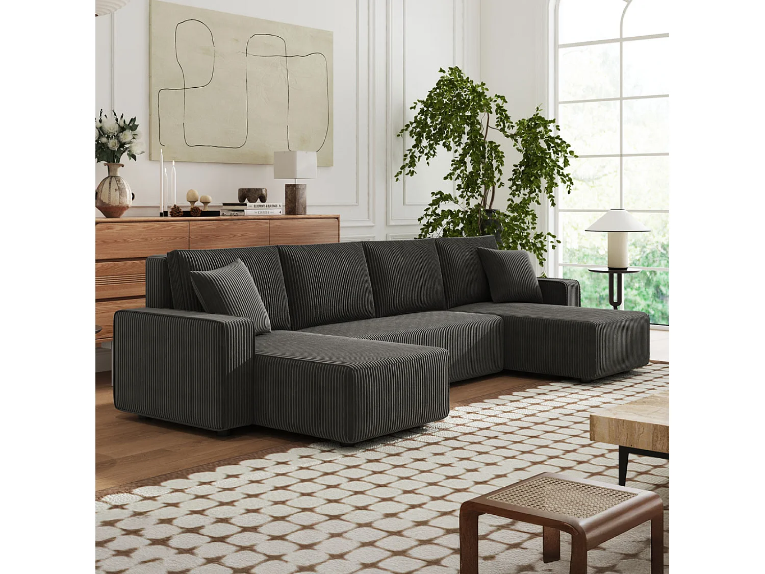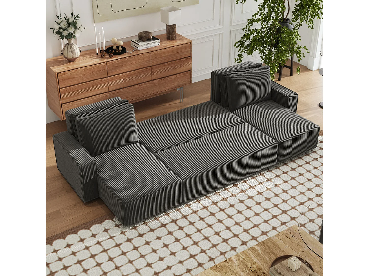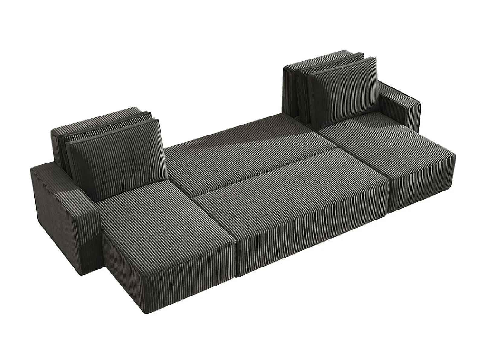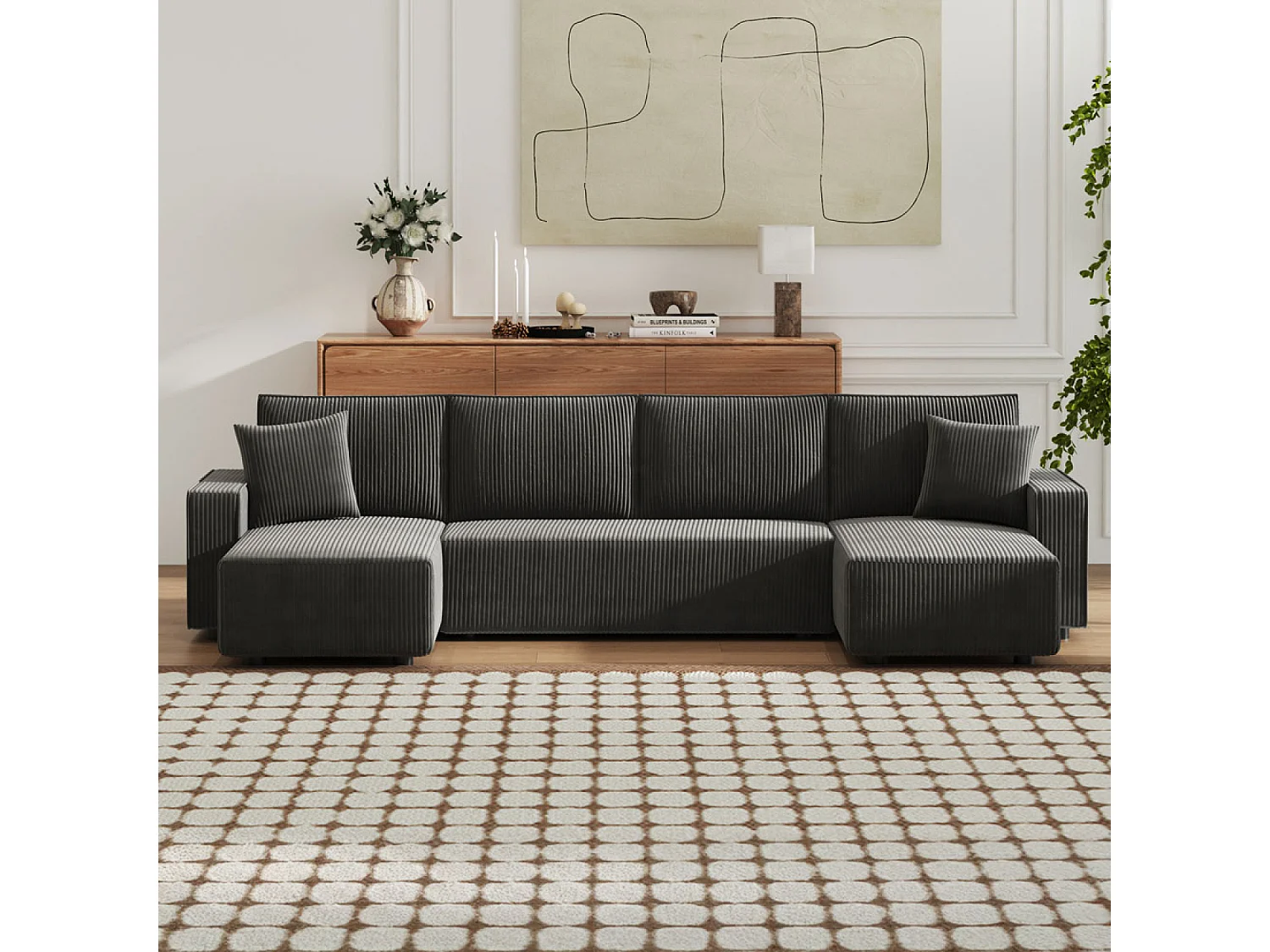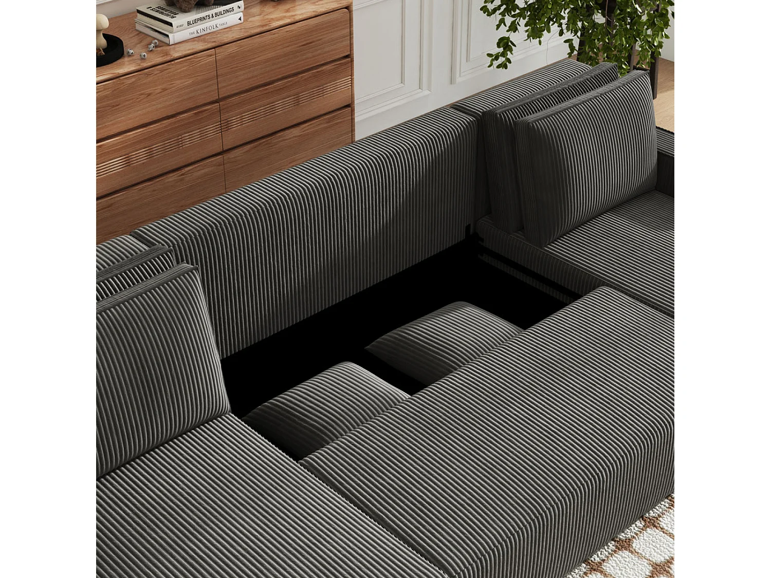 Canapé convertible 6 places avec coffre en velours côtelé anthracite SALISBURY
