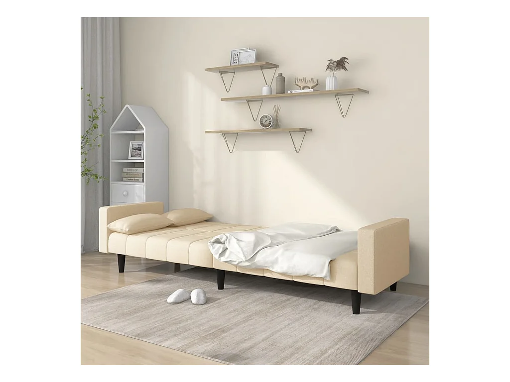 Canapé convertible à 2 places avec deux oreillers crème tissu REO75998